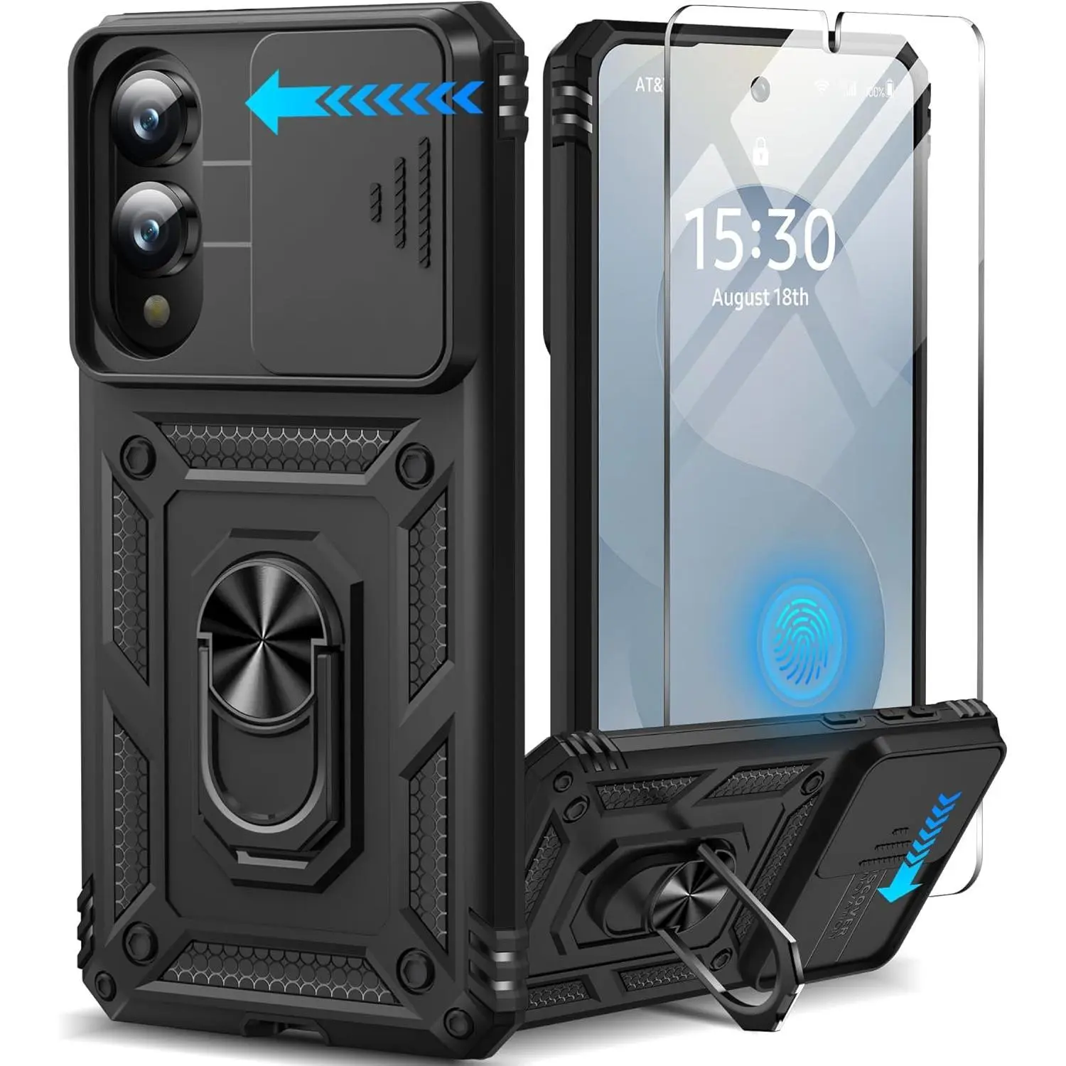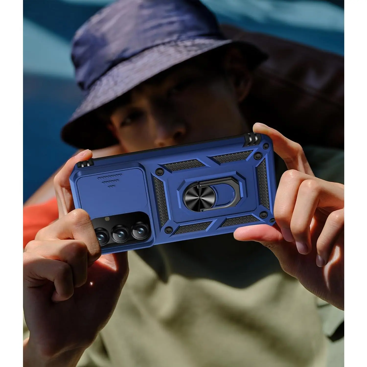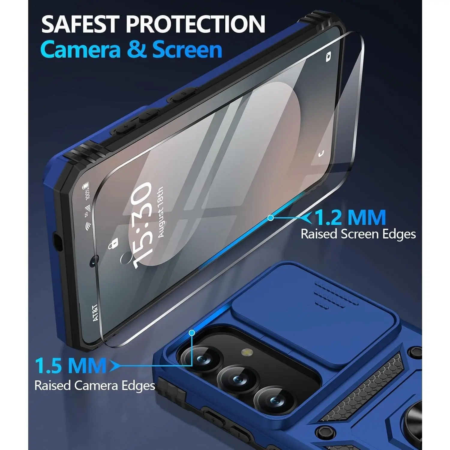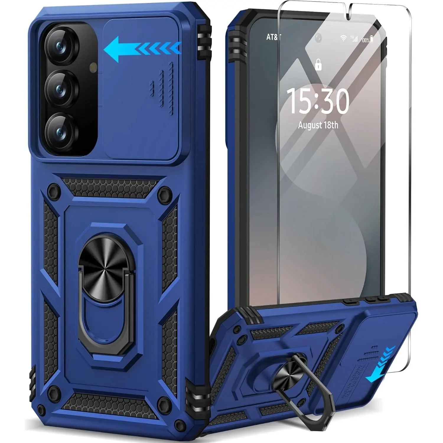 for Samsung Galaxy S25 FE Case with Screen Protector & Slide Camera Lens Cover, Built-in Magnetic Ring Stand Shockproof Protective Phone Case for Samsung S25 FE Case (Blue)