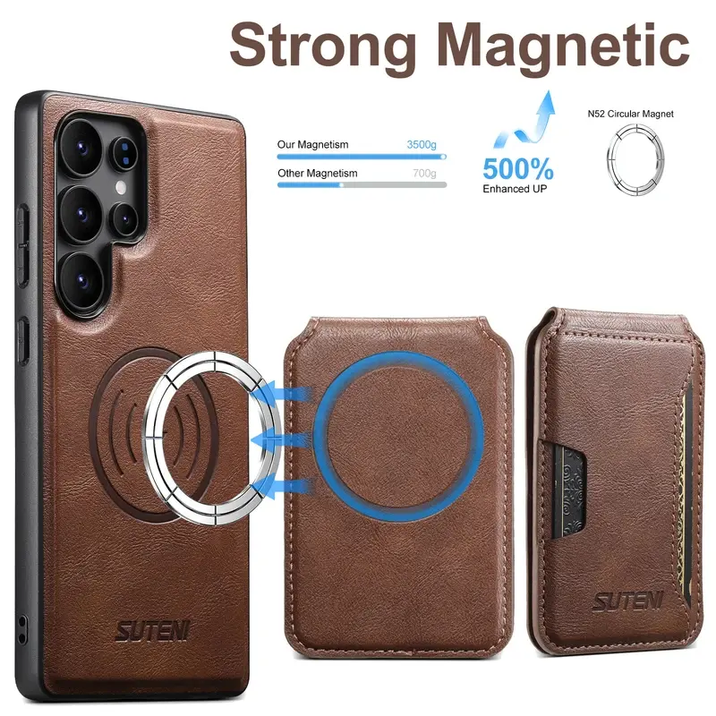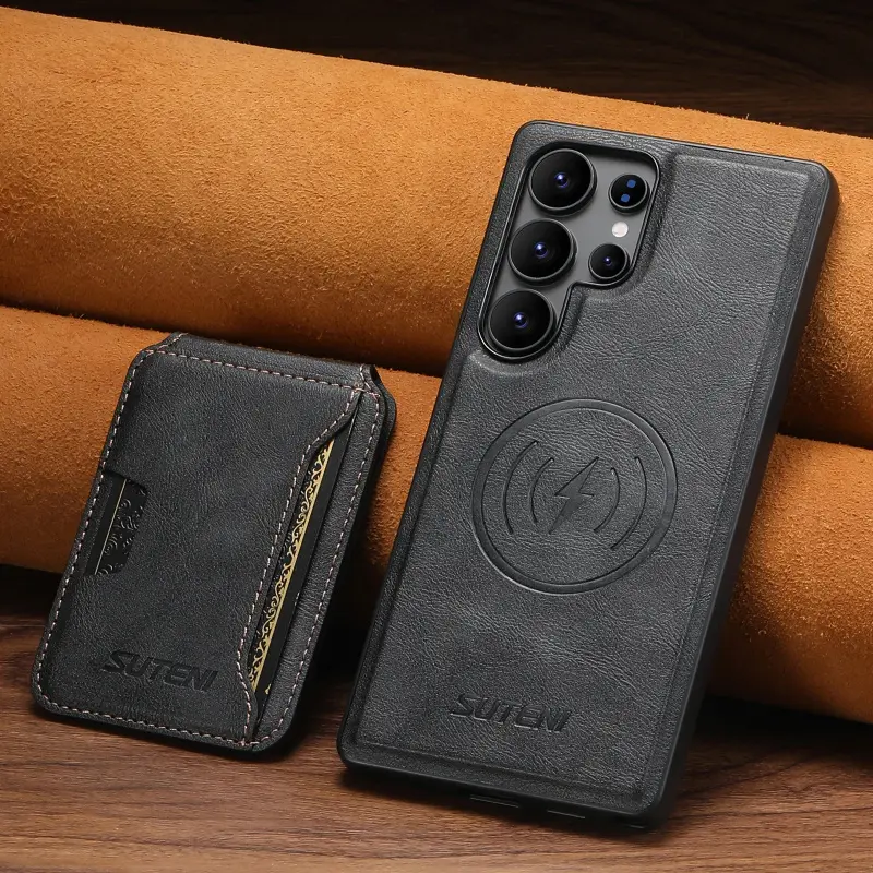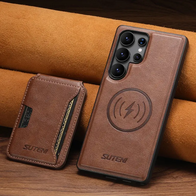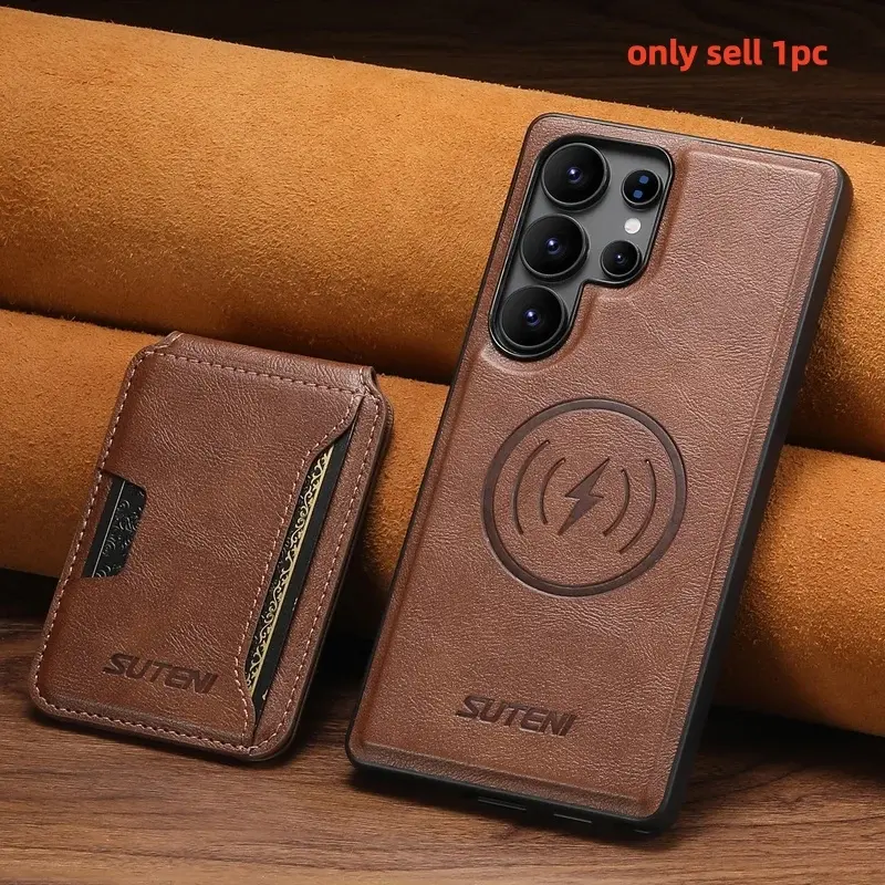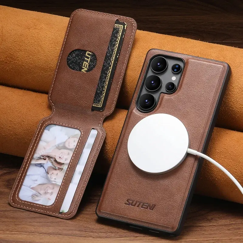 Magnet Wireless Charging Luxury Faux Leather Phone Case Card Holder Stand For Samsung Galaxy S26 Ultra S25 S24 S23 S22