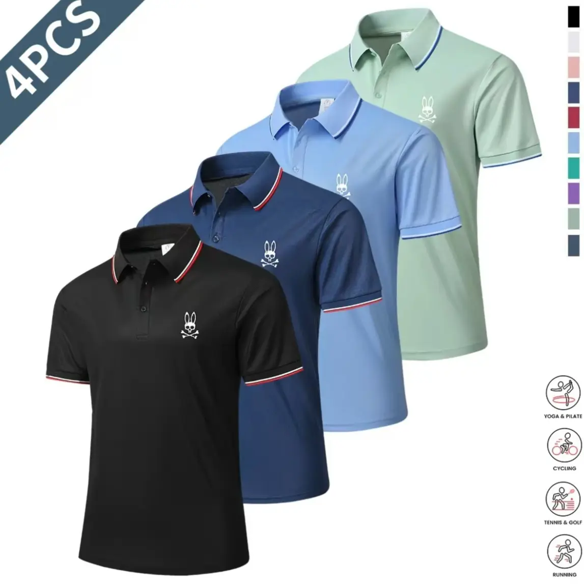Men’s casual short-sleeve polo shirt set, 4 pieces, mixed colors; printed polo shirts, breathable and cool, suitable for all seasons—an ideal choice for holiday gifts.