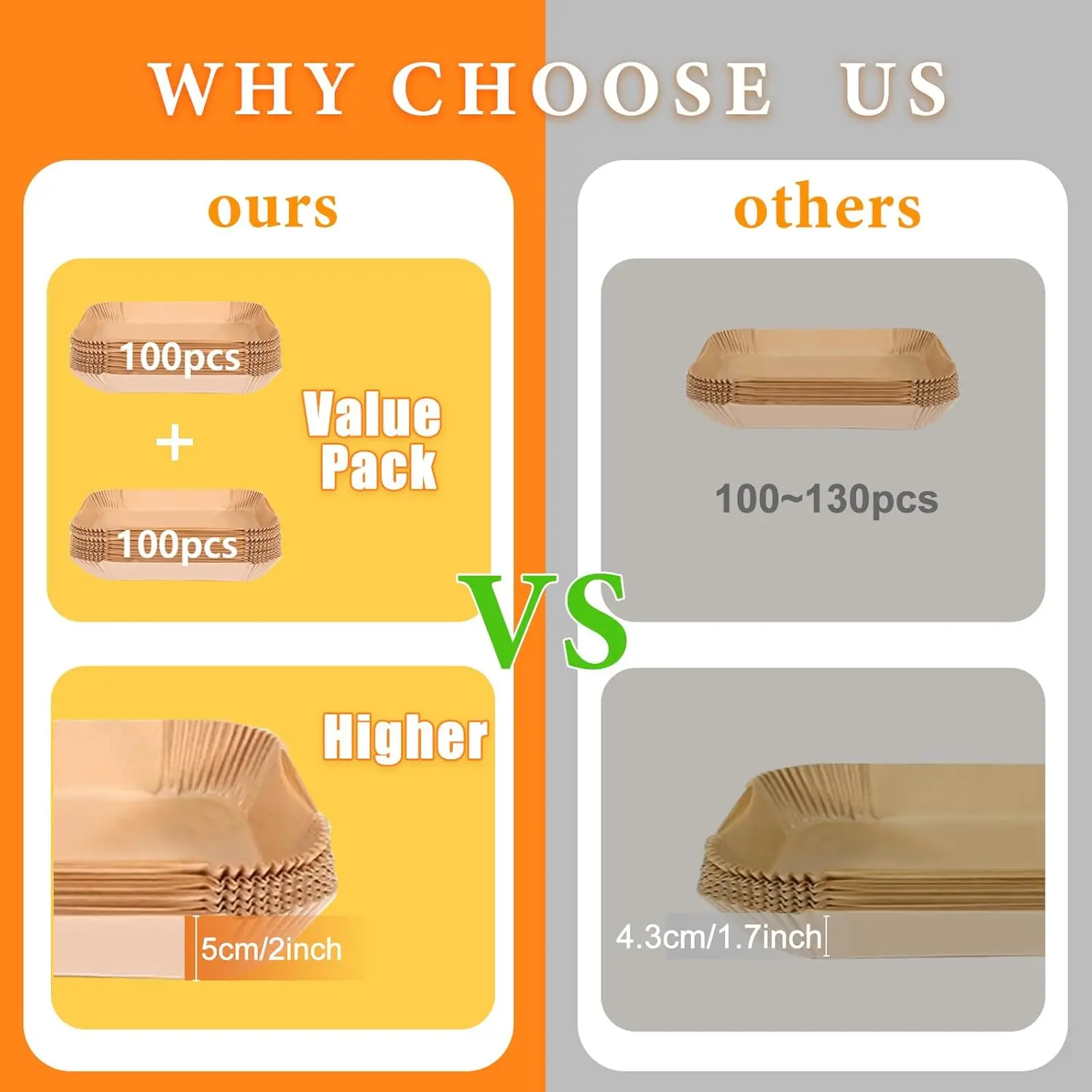 ·Higher & Oil proof : Our air fryer liners is 2 inches high, 17% higher than the 1.7 inches of other airfryer liners on the market, which better protects the sides of the air fryer and prevents food from sticking to them. Our air fryer paper is oil and water resistant, preventing food residue and grease from seeping into the air fryer basket, keeping the bottom and side clean and extending the life of the air fryer.