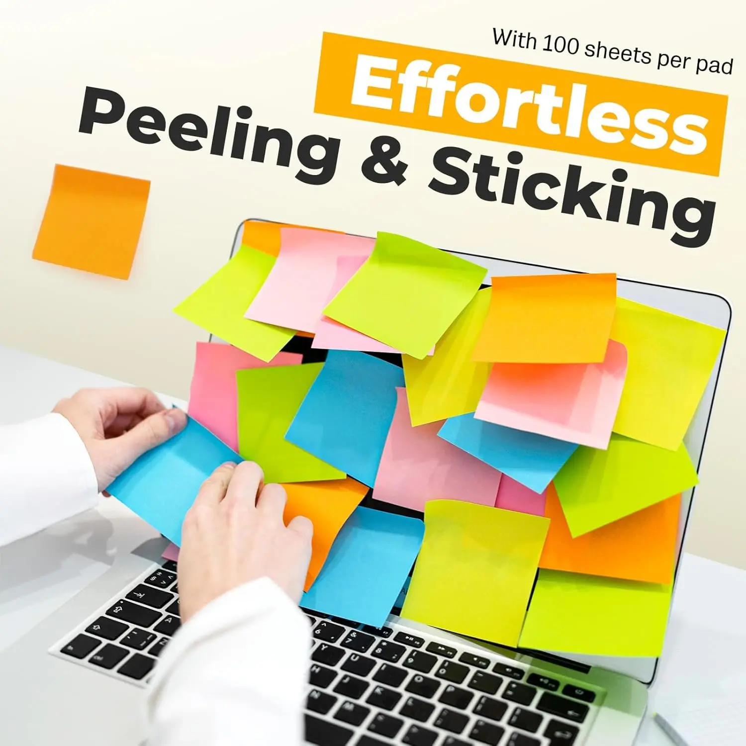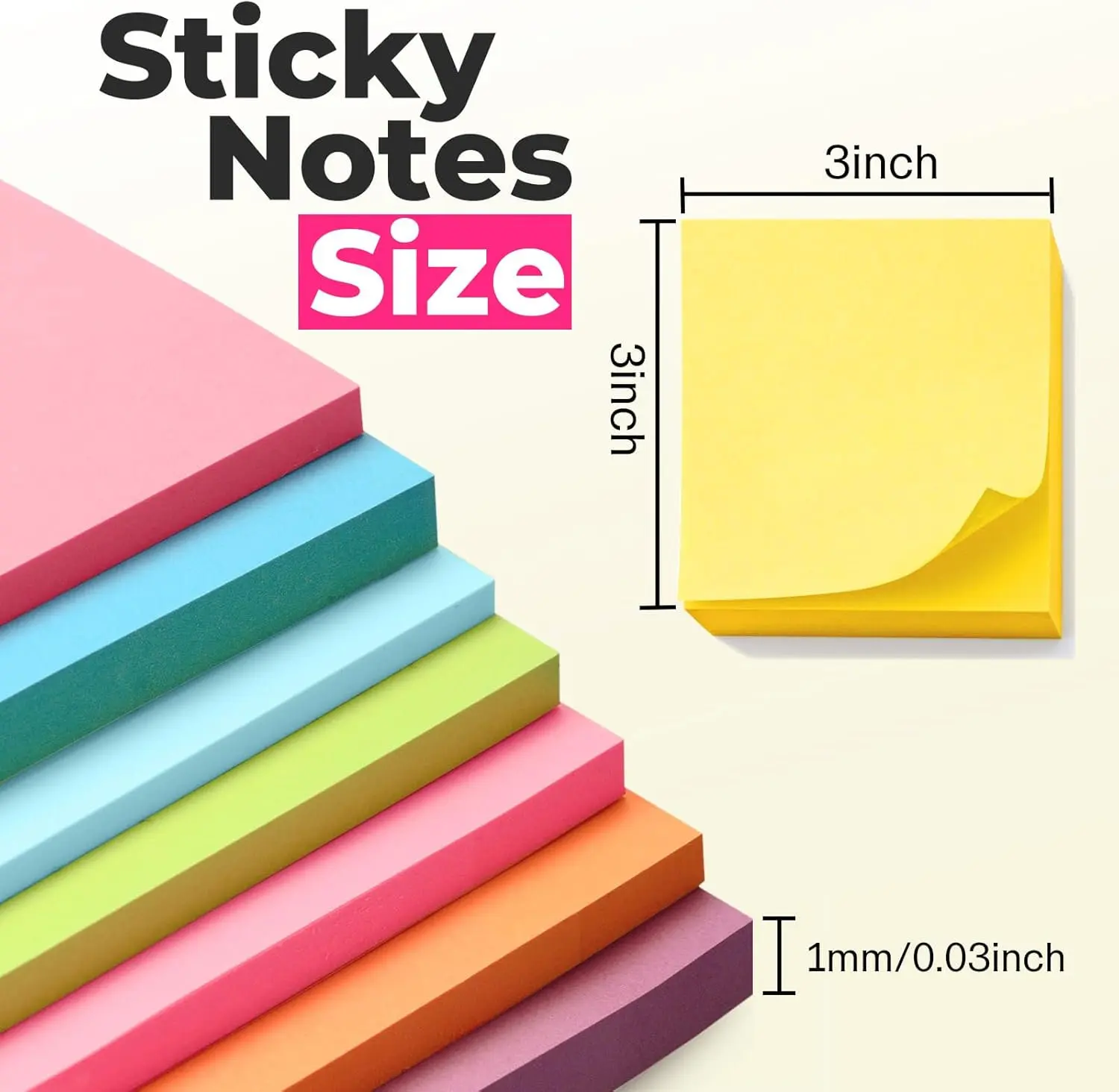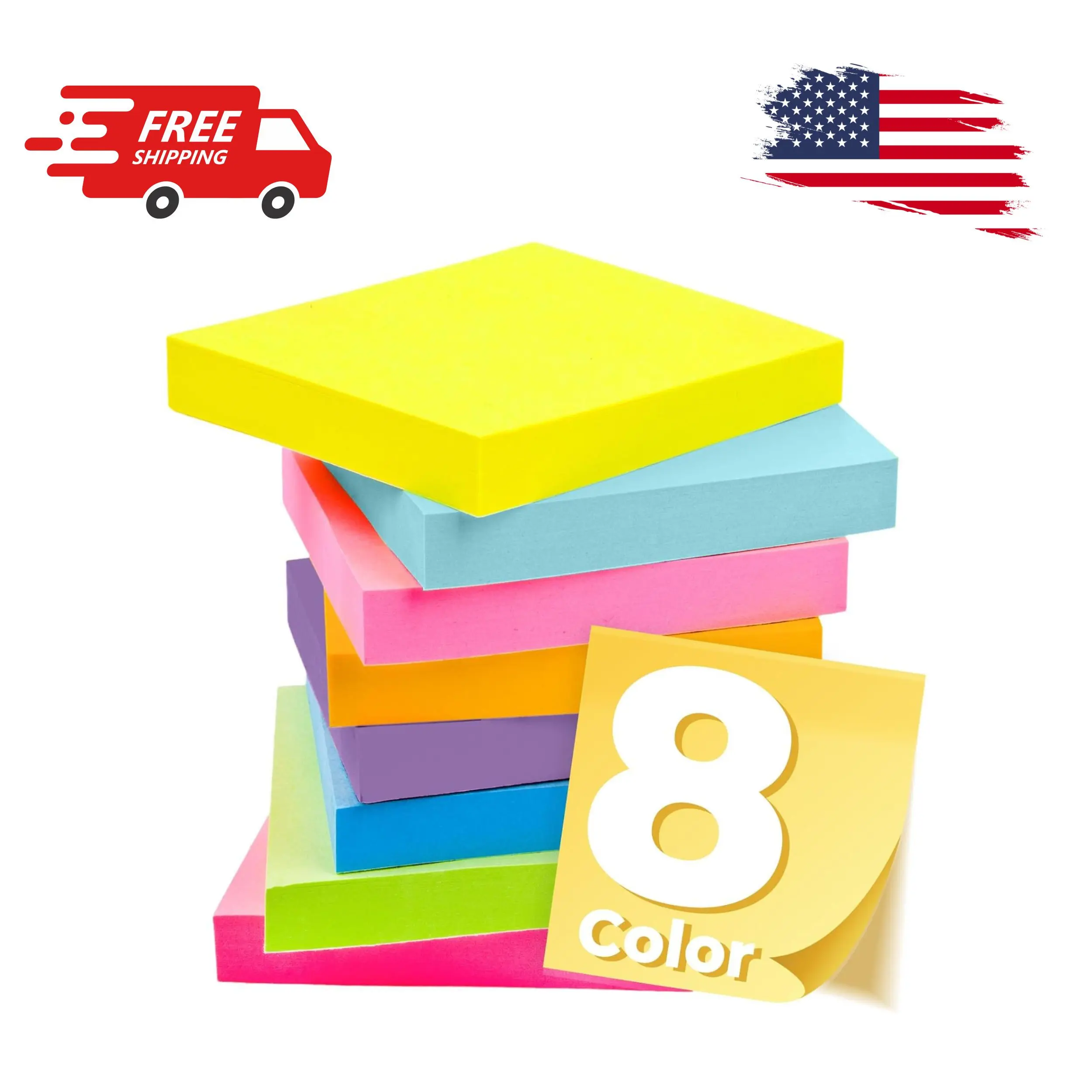 Sticky Notes 3x3 Inches, Bright Colors Self-Stick Pads (8 Pads)
