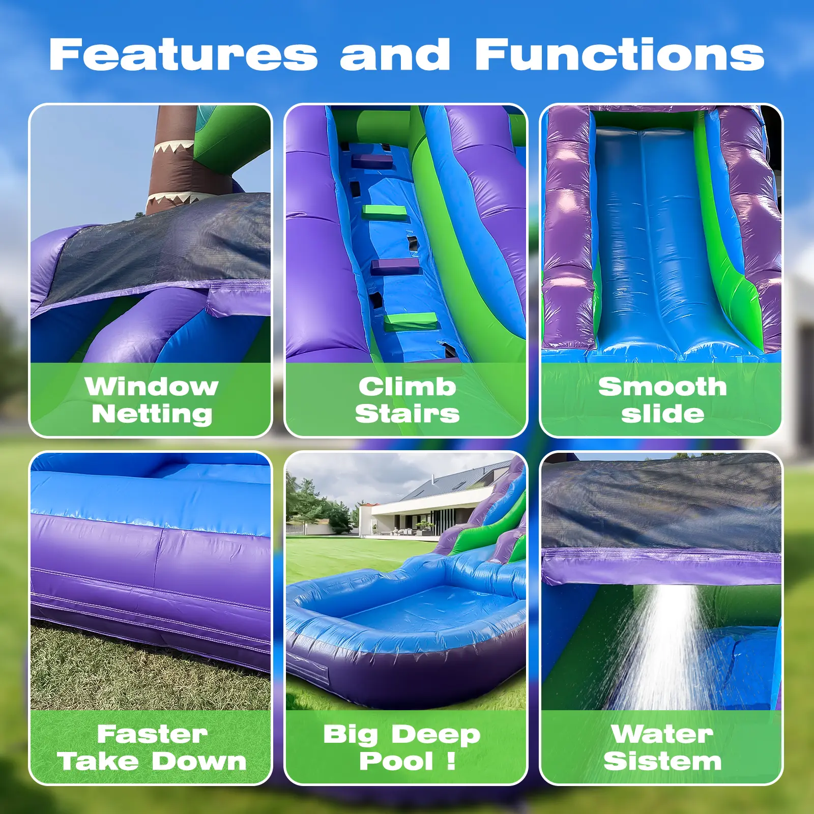 ·Commercial Grade Durable Water Slide: Crafted entirely from heavy-duty 100% PVC vinyl, our professional-grade water slide for adults is built to outperform. Unlike flimsy nylon residential bounce houses, our rental-grade material is more stronger and reinforced at high-stress points with industrial-strength double to quadruple stitching.