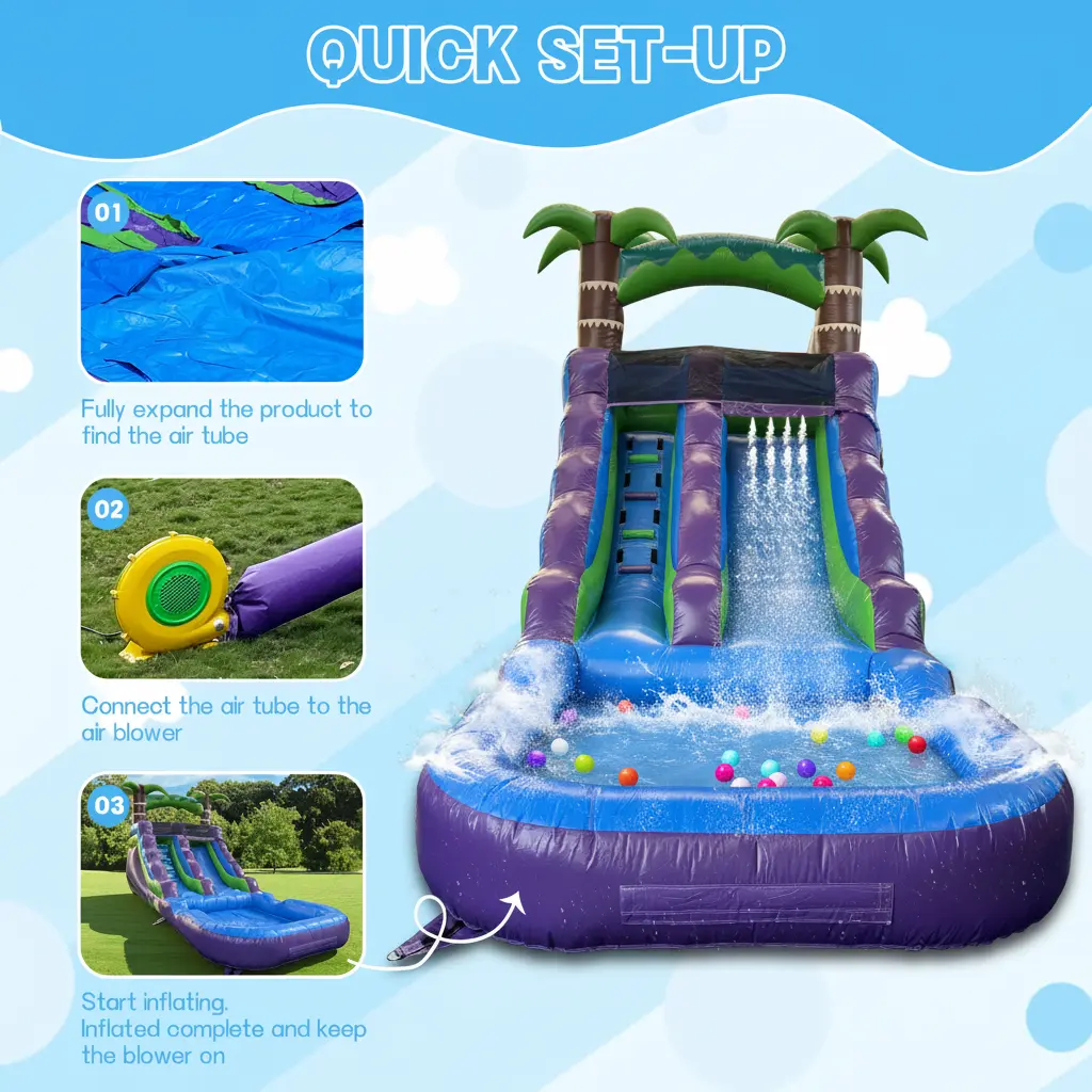 Commercial Grade Water Slide 100% PVC Inflatable Water Slide with Splash Pool Playground Outdoor Kids Adult Summer Water Play Commercial Rental Equipment Summer Fun