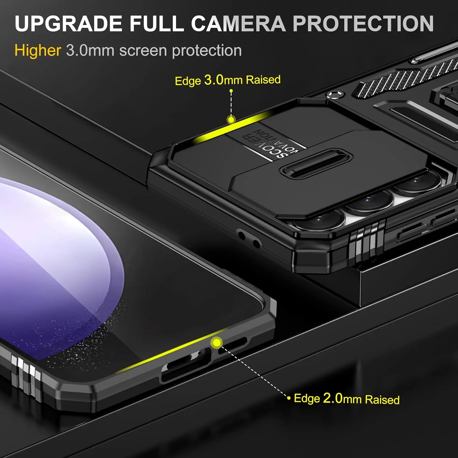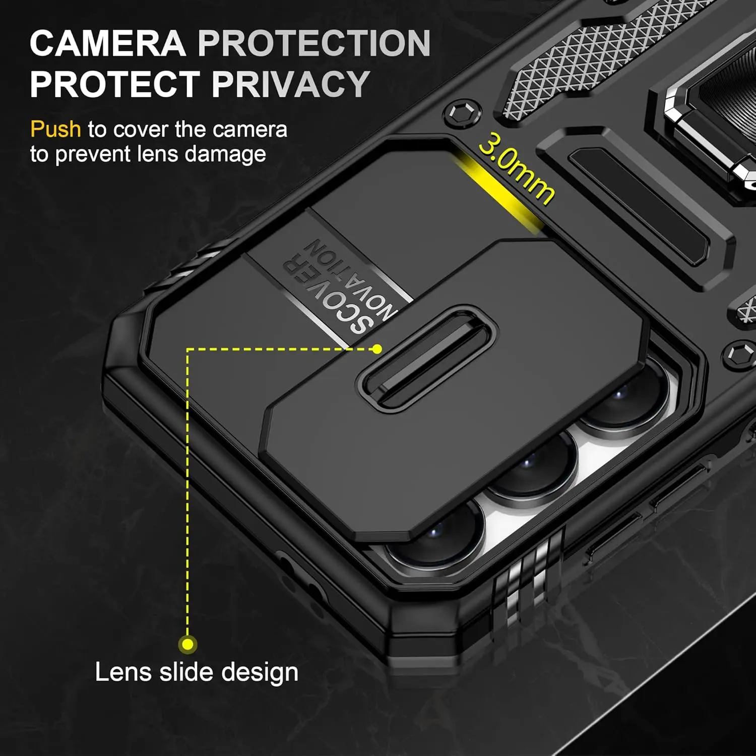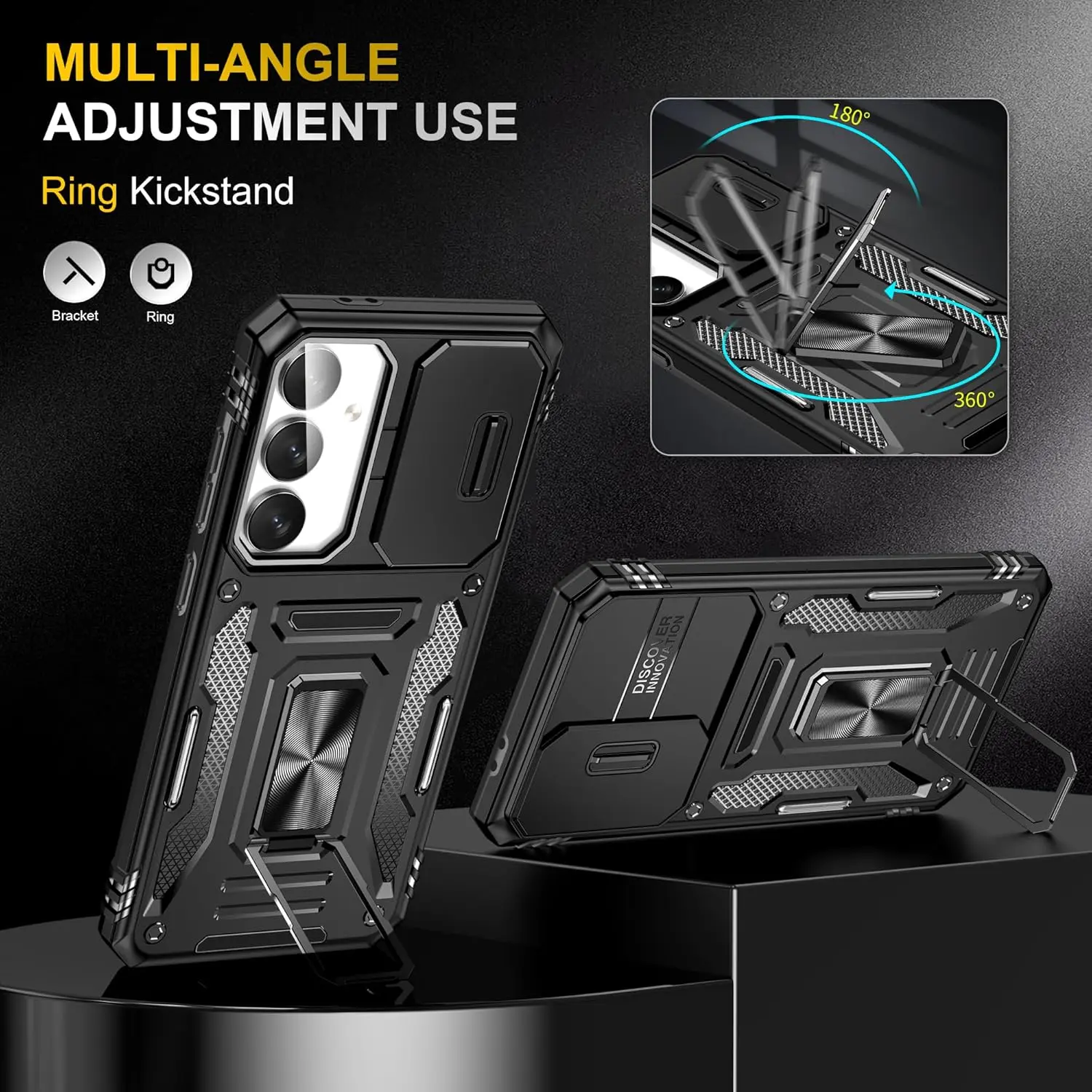 for Samsung Galaxy A16 5G Case with Slide Camera Cover + Screen Protector(2 Packs), Rotated Ring Kickstand Military Grade Shockproof Protective Cover for Samsung Galaxy A16 5G (Black)