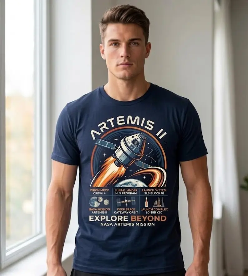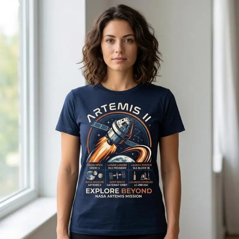 Artemis II Mission Shirt, Orion MPCV SLS Rocket Space Exploration Tee, Lunar Return Infographic, Astronomy Lover Unisex T-Shirt