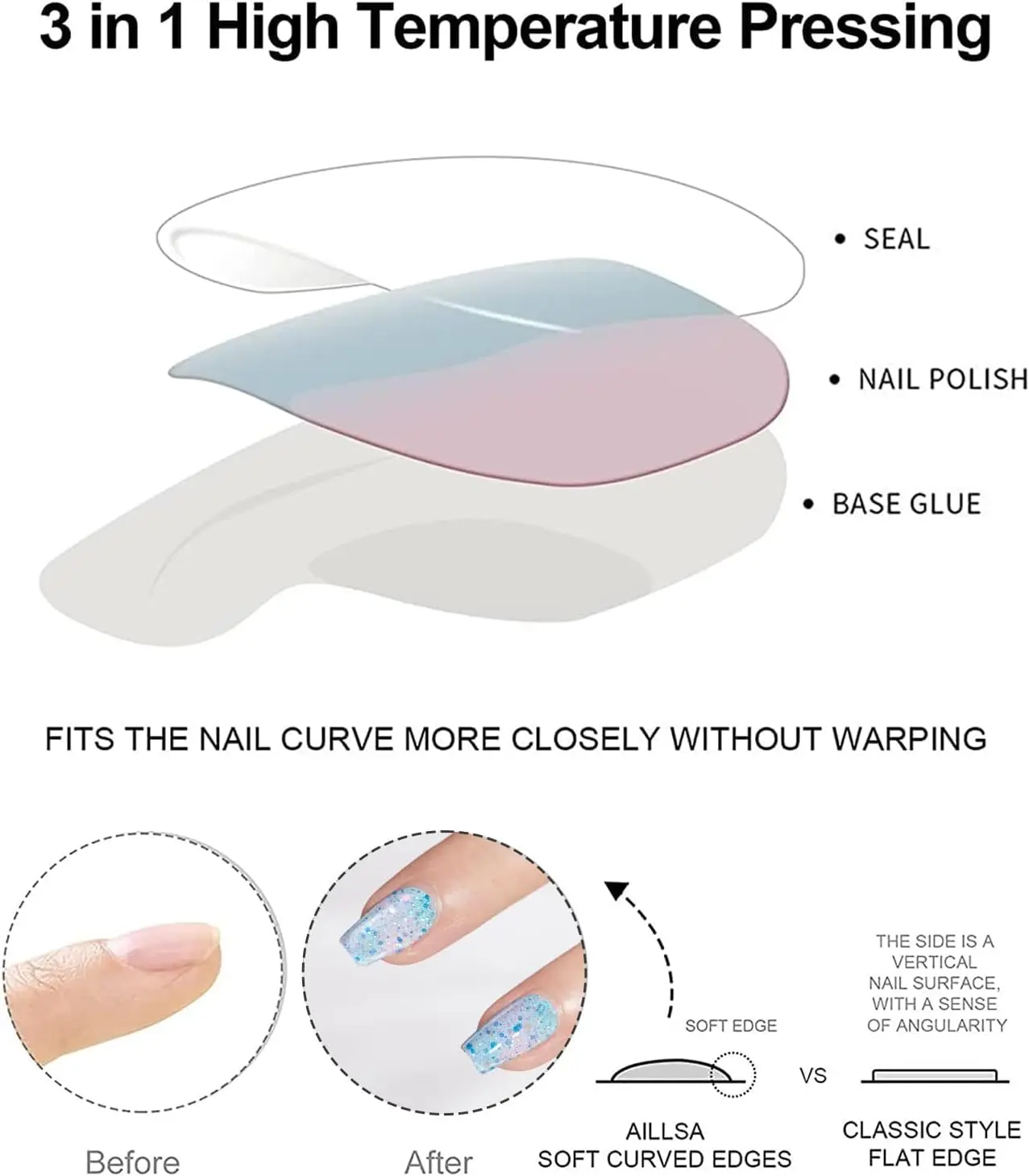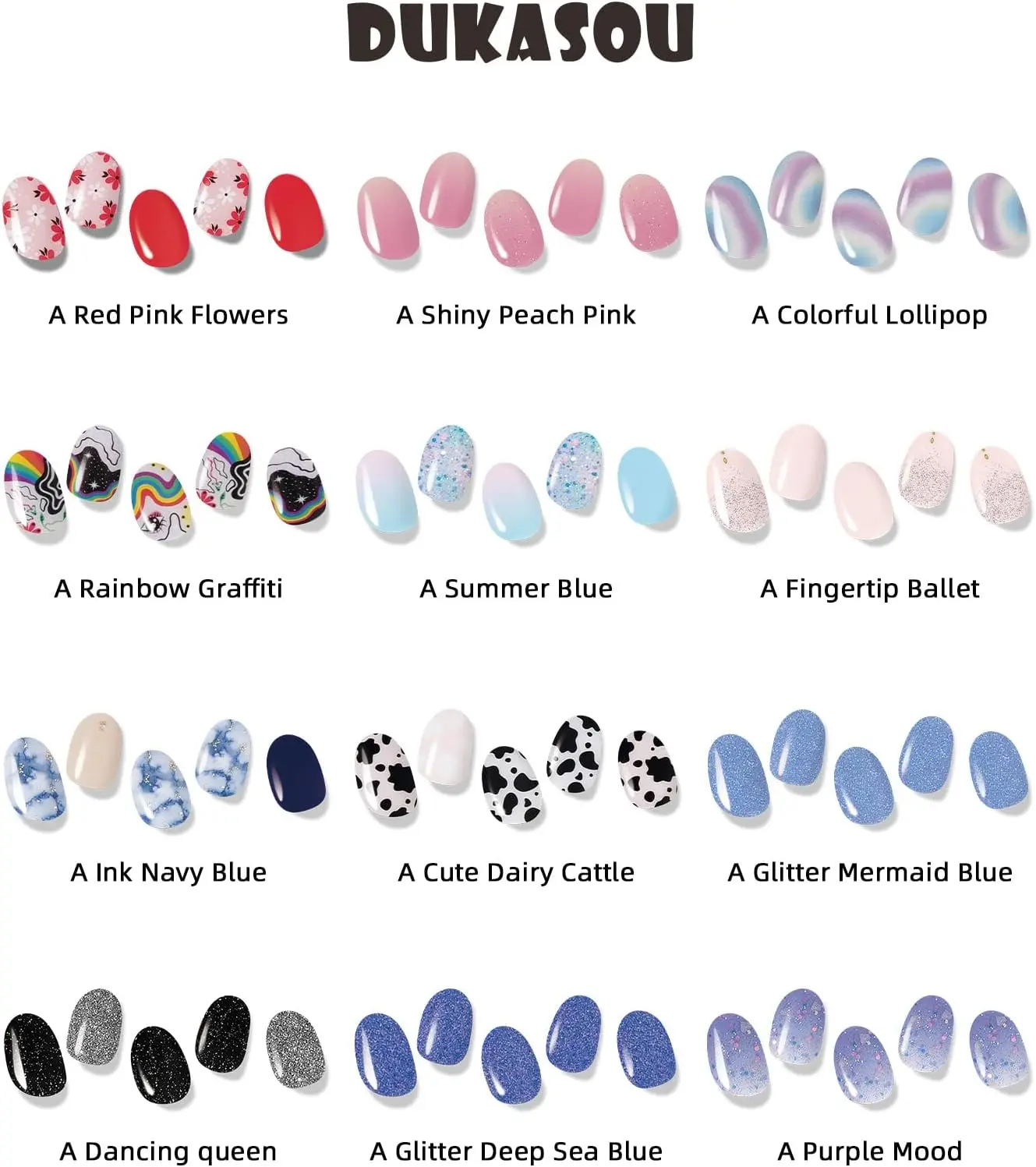 ·Real Gel Nail Polish Strips: Our semi cured gel nails are made of real liquid polymer gel, pre-cured 60% to maintain softness and elasticity. Upgrade the edge of the nail paste with the nail, good adhesion, not easy to fall off