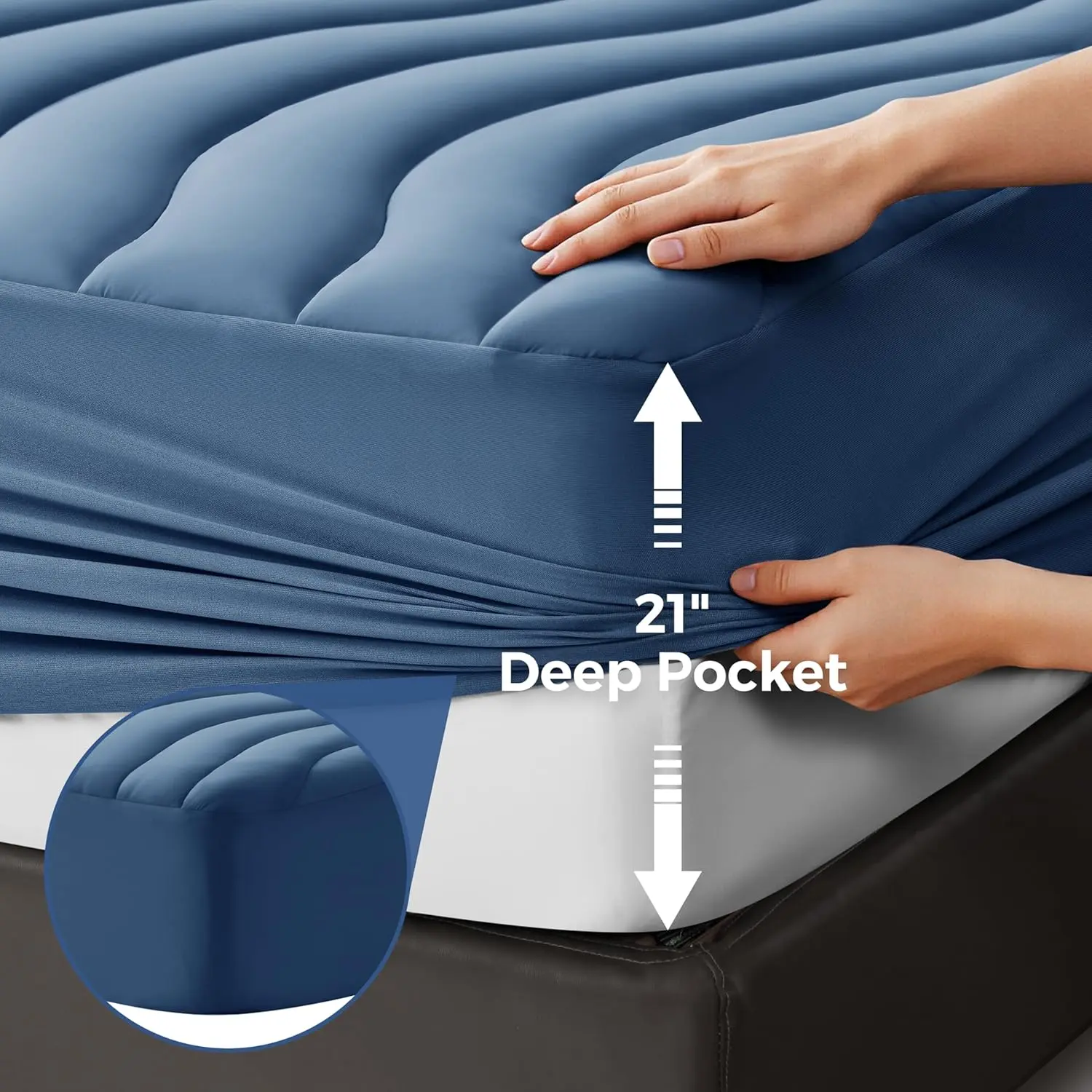 Deep Pocket Design – Stays in Place – Extra-deep elastic skirt wraps snugly around thick mattresses (fits 8–21 inches). Prevents slipping or bunching, while shielding your mattress from stains, dust, and wear.