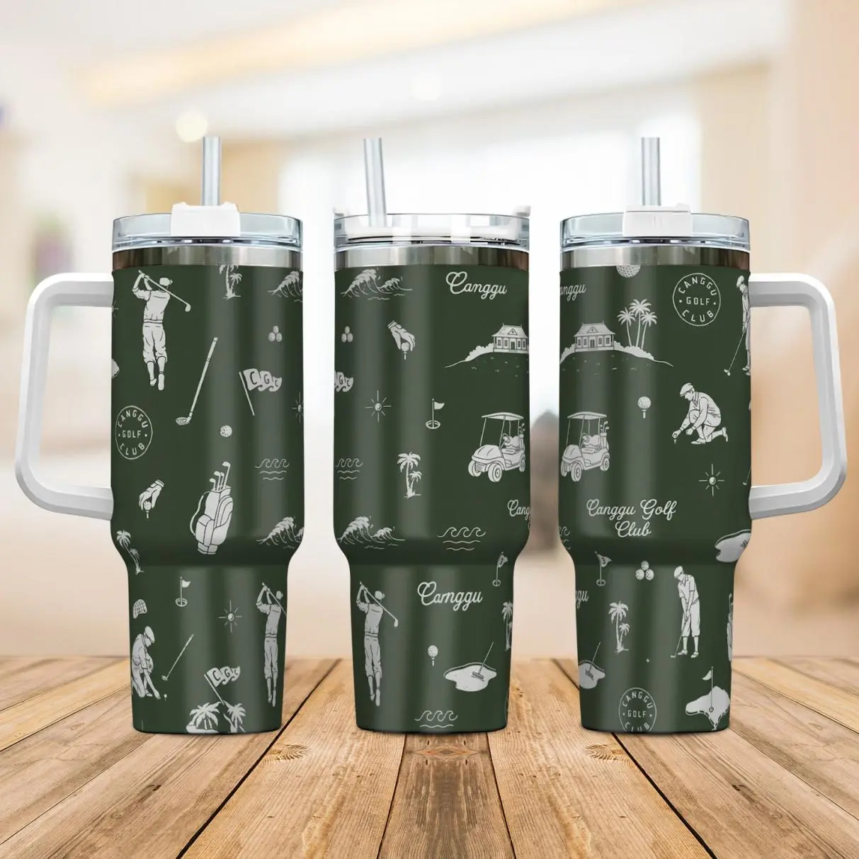 Canggu Bali Golf Club Tumbler 40oz, Golf Lover Travel Mug with Handle and Straw, Insulated Cup for Golf Enthusiasts