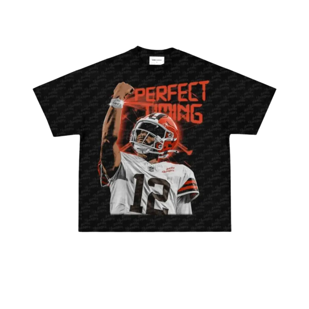 Comfort Colors Browns #12 Perfect Timing Graphic T-Shirt, Vintage Football Hype Streetwear Tee, Retro Game Day Fan Shirt Cleveland Style, Unisex Soft Washed Cotton Sports Apparel