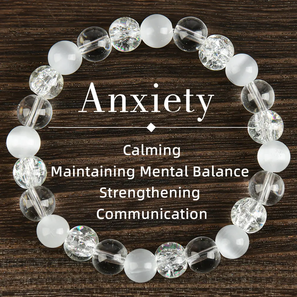 Find your inner peace with our crystal anxiety relief bracelet.Handcrafted with clear crystals and moonstone, this spiritual jewelry is designed to relieve anxiety, calm racing thoughts, and help maintain mental balance.