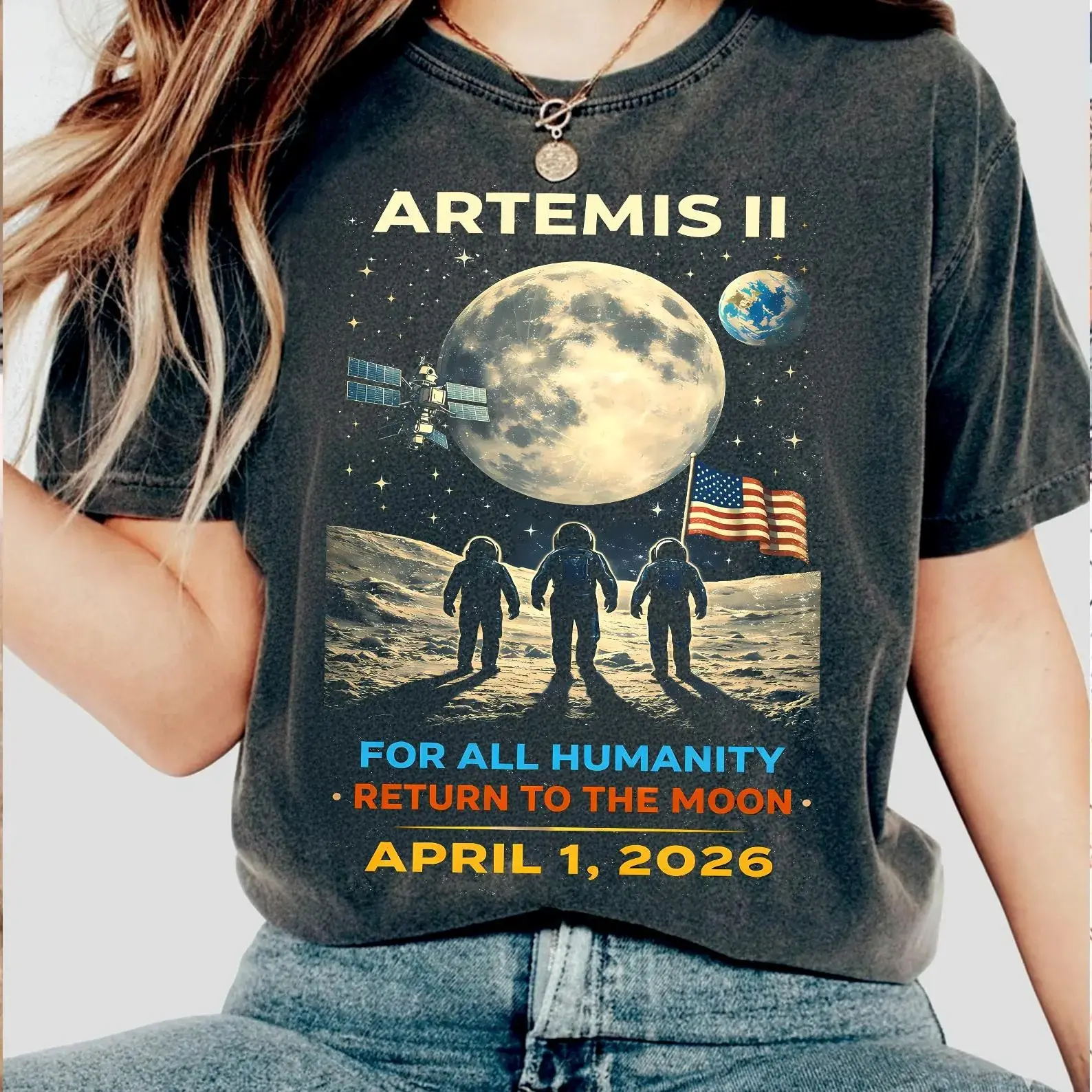 5. Comfort Colors Artemis II Mission 2026 Tee, NASA Moon Orbit Graphic Shirt, Space Exploration Gift for Him or Her, Astronaut Crew Commemorative Top
