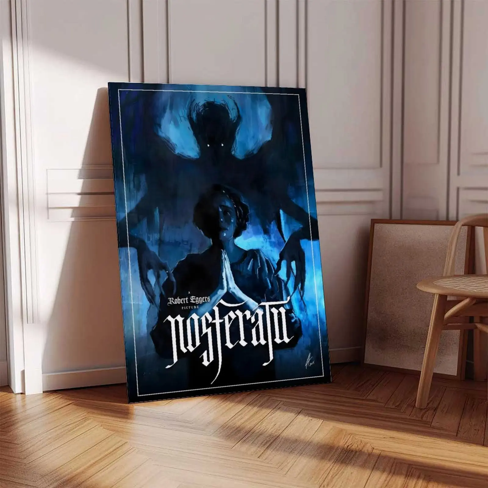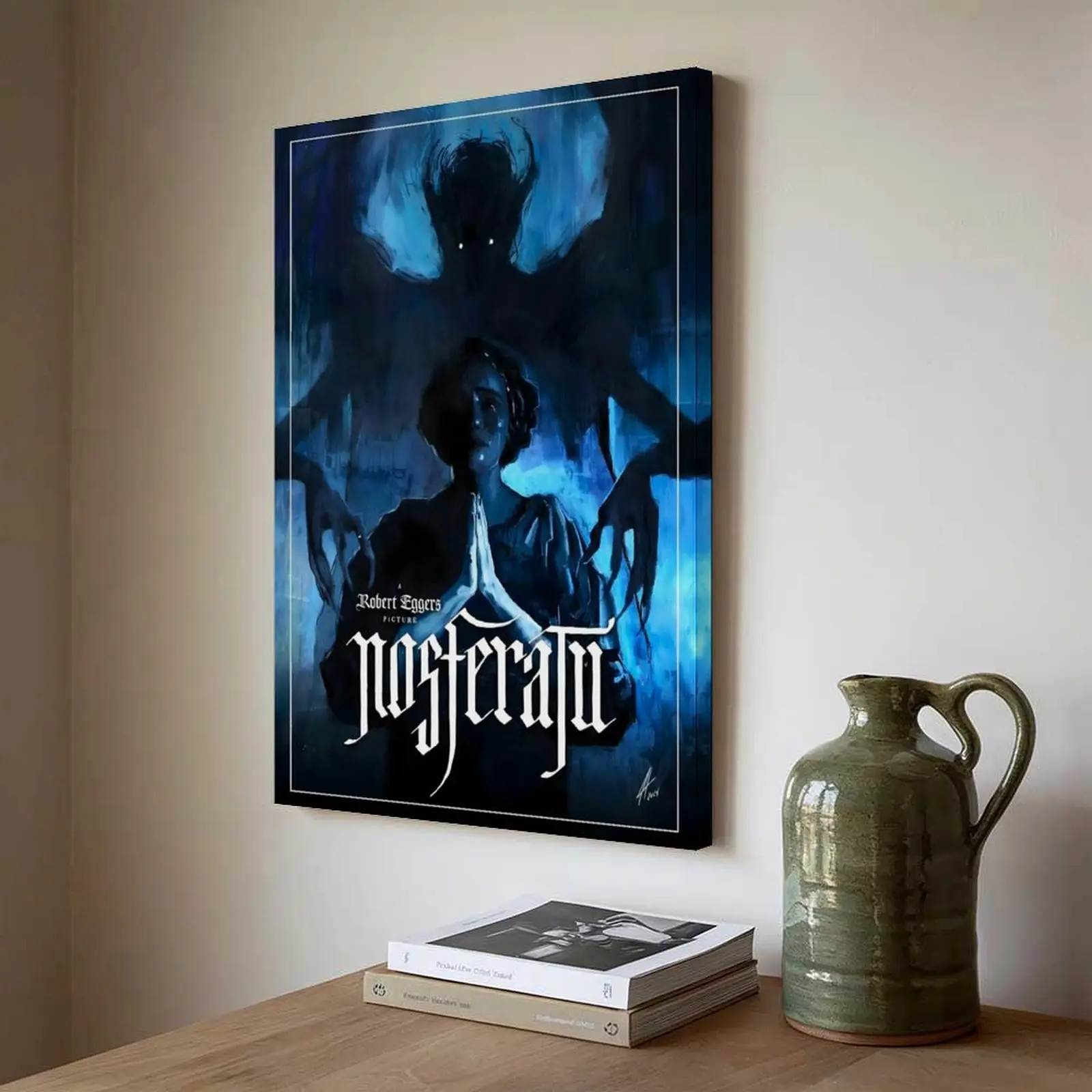 Dark gothic style canvas poster, blue nightmare vintage horror movie art print, classic vampire legend iconic scene wall hanging, premium collector-grade horror enthusiast wall art, perfect Halloween-themed aesthetic decoration