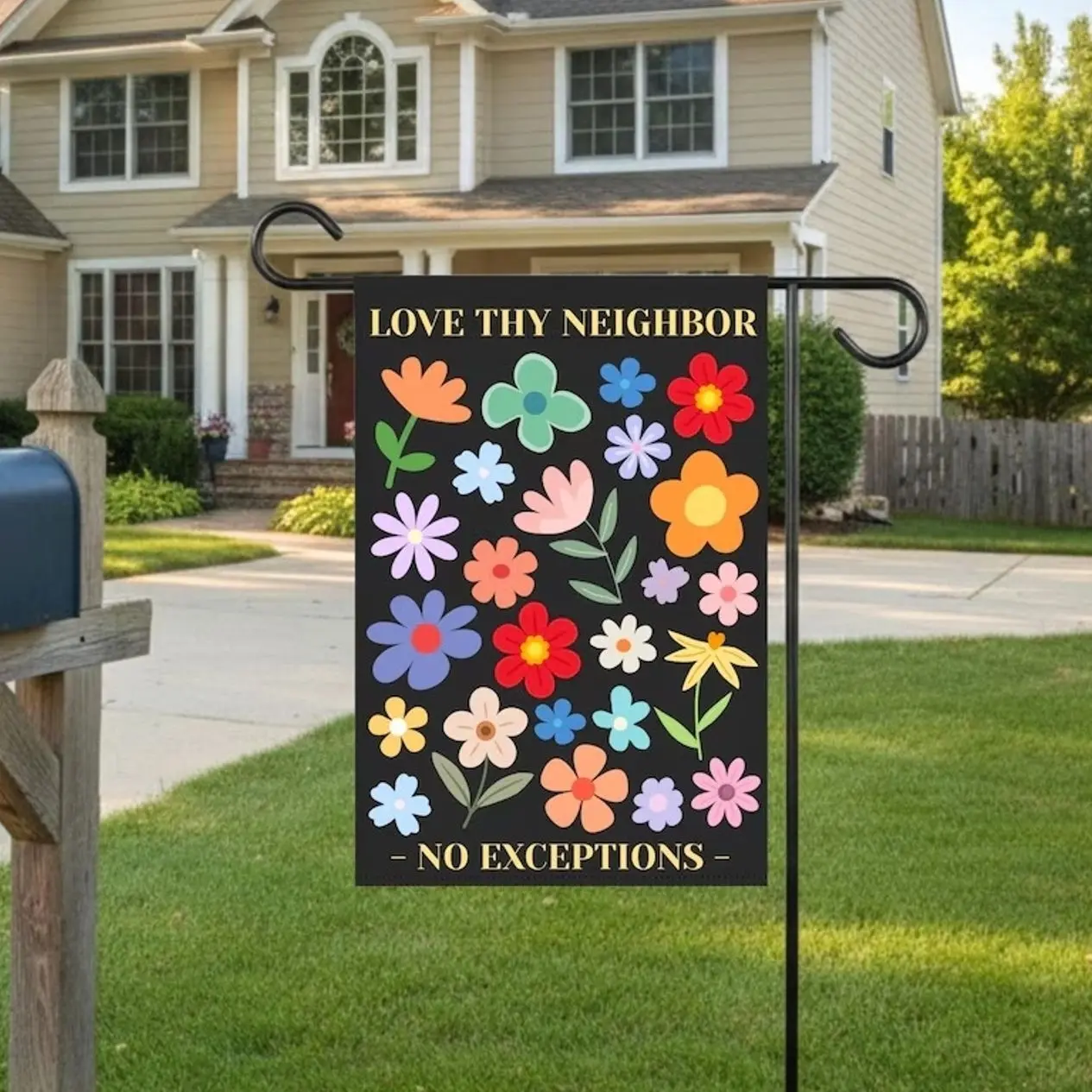 5. Love Thy Neighbor Garden Flag, Floral Equality, Pride, LGBTQ+ Decor