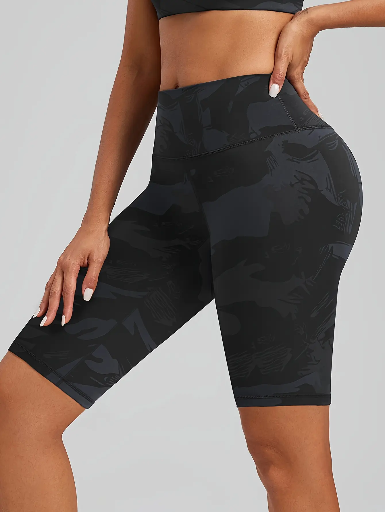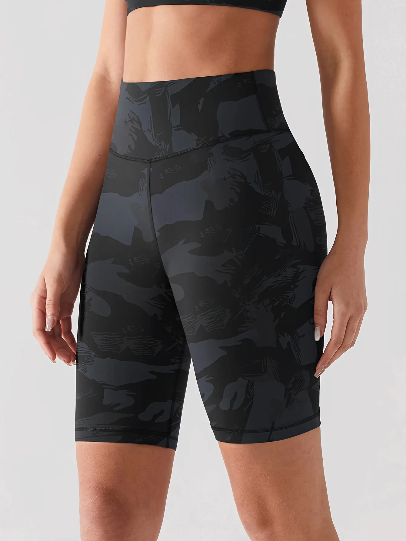 1 piece of women's high-waisted butt-lifting yoga pants, cycling shorts, fitness sports shorts, summer camouflage pattern, super elastic, comfortable, soft, and sweat-absorbent, suitable for gym, yoga, pilates, outdoor sports, cycling, running, footb
