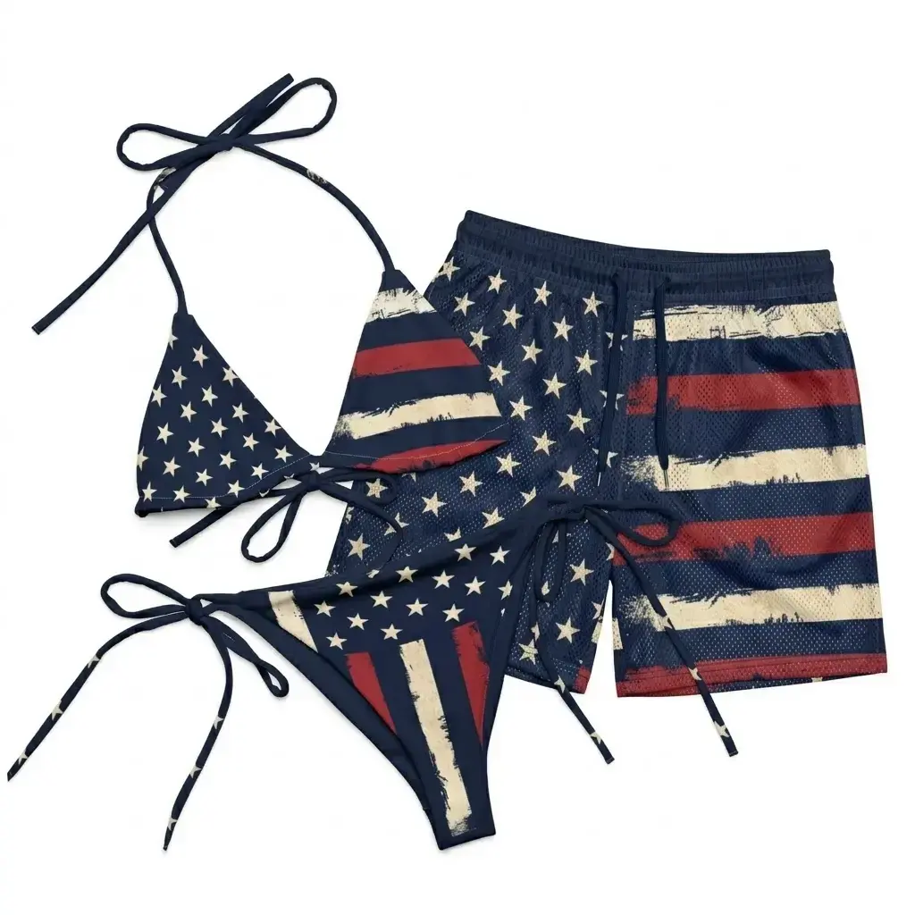 Stylish combo with bikini + lightweight mesh shorts — perfect for couple outfits, vacations, beach trips, and pool parties.