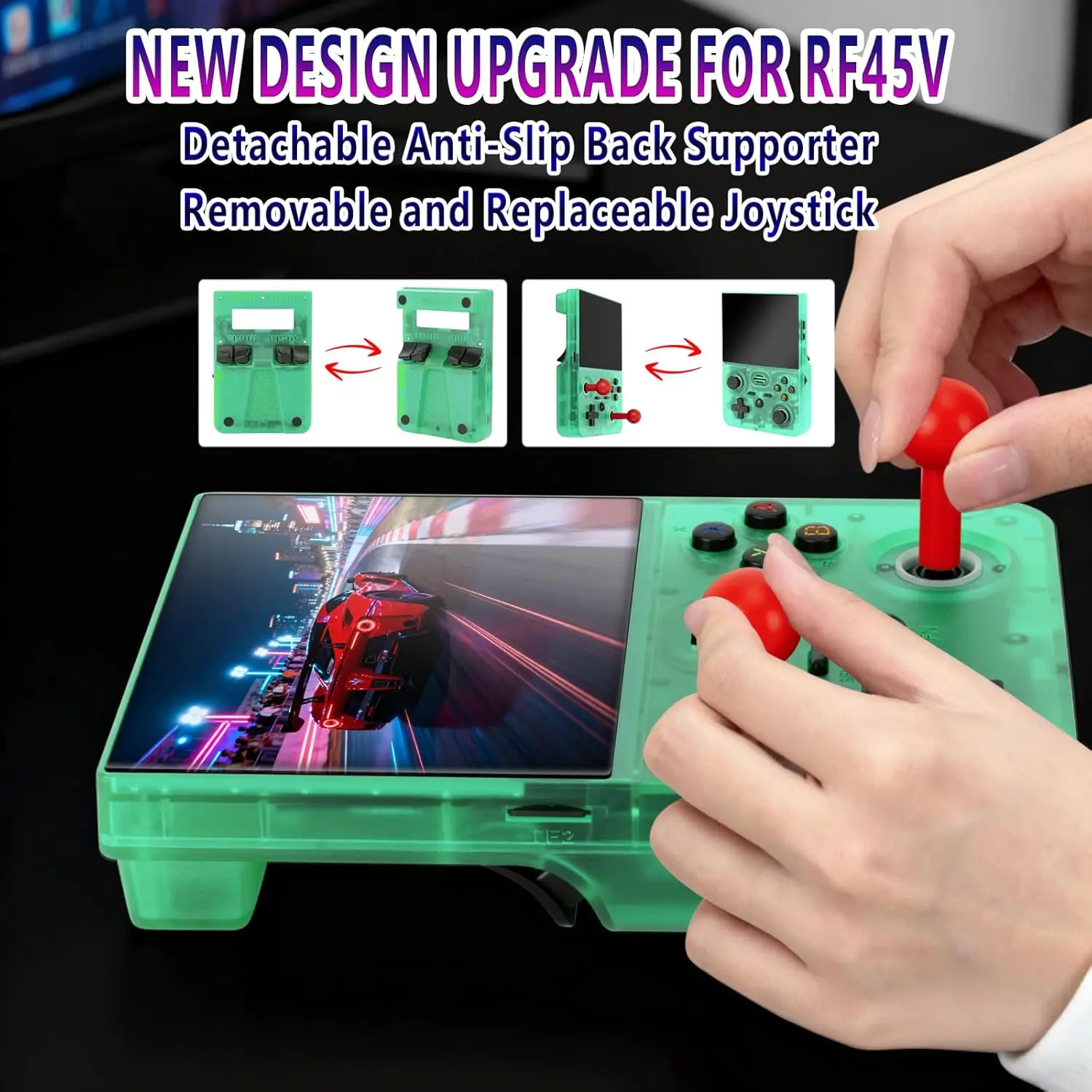 ·Precisely Engineered Console for Peak Enjoyment: the RF45V retro game console blends classic and contemporary aesthetics.Its manufacturing process embodies the concepts of "practicality" and "cutting-edge technology". An additional highlight is the detachable anti-slip stand integrated on the back cover, allowing users to place the device flat, thus freeing their hands and adding a newly upgraded detachable replaceable joystick for customers to use, enhancing the gaming experience. The RF45V game console has already won over countless gaming fans