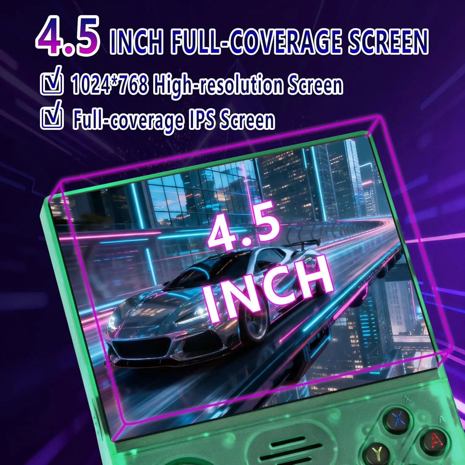 ·4.5-inch high-definition display: The RF45V handheld game console is equipped with a 4.5-inch IPS OCA fully adhered MIPI screen with a resolution of 1024×768. This game console adopts specific technologies to ensure a wide viewing angle and stable picture quality from different angles. Whether you are reliving precious memories or experiencing these classic games for the first time, this RF45V game console inverted game console is ready to provide you with a feast for your eyes