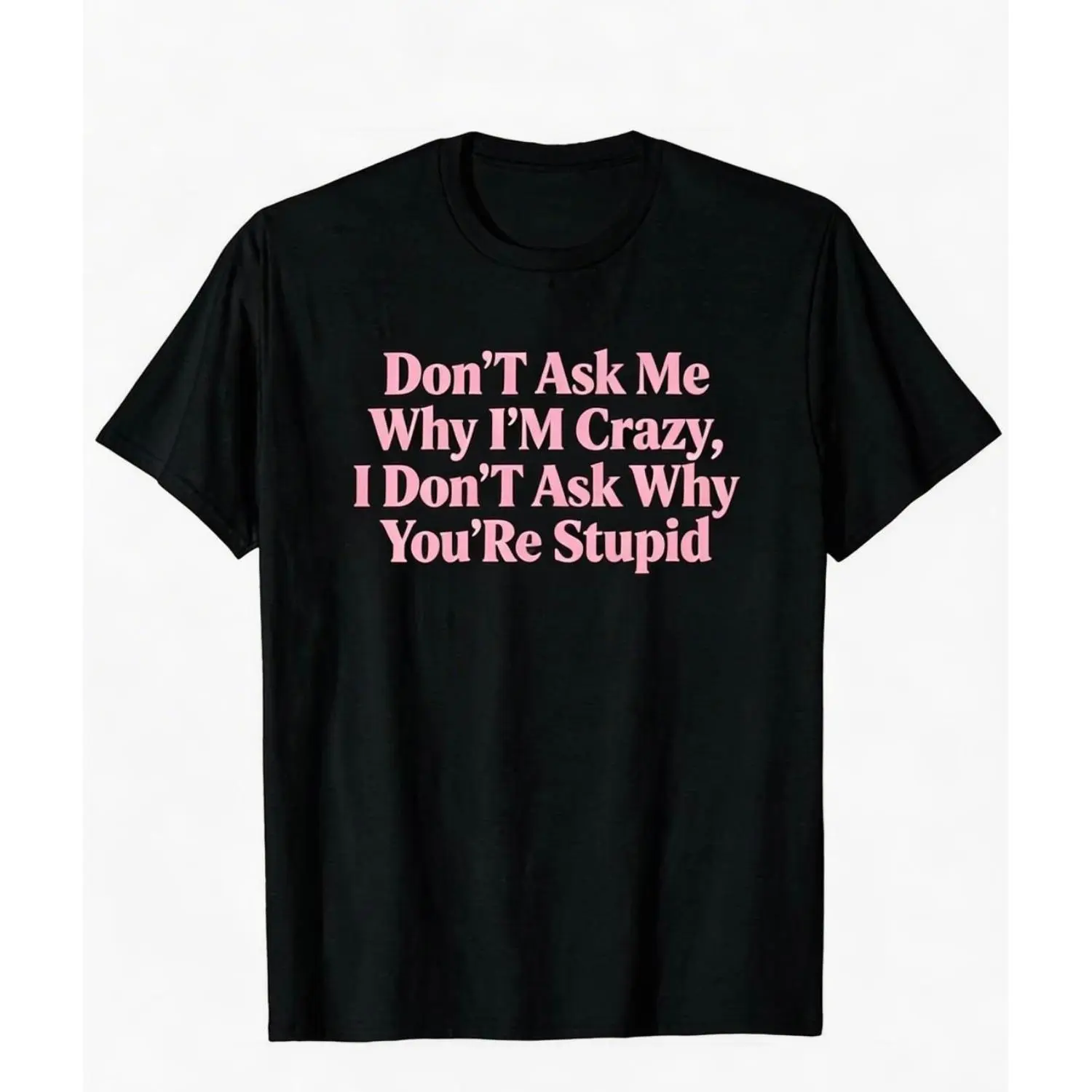 Don’T Ask Me Why I’M Crazy T-Shirt Pink Text Sassy Funny Graphic Tee Women’s Casual Trendy Top Gift for Friends