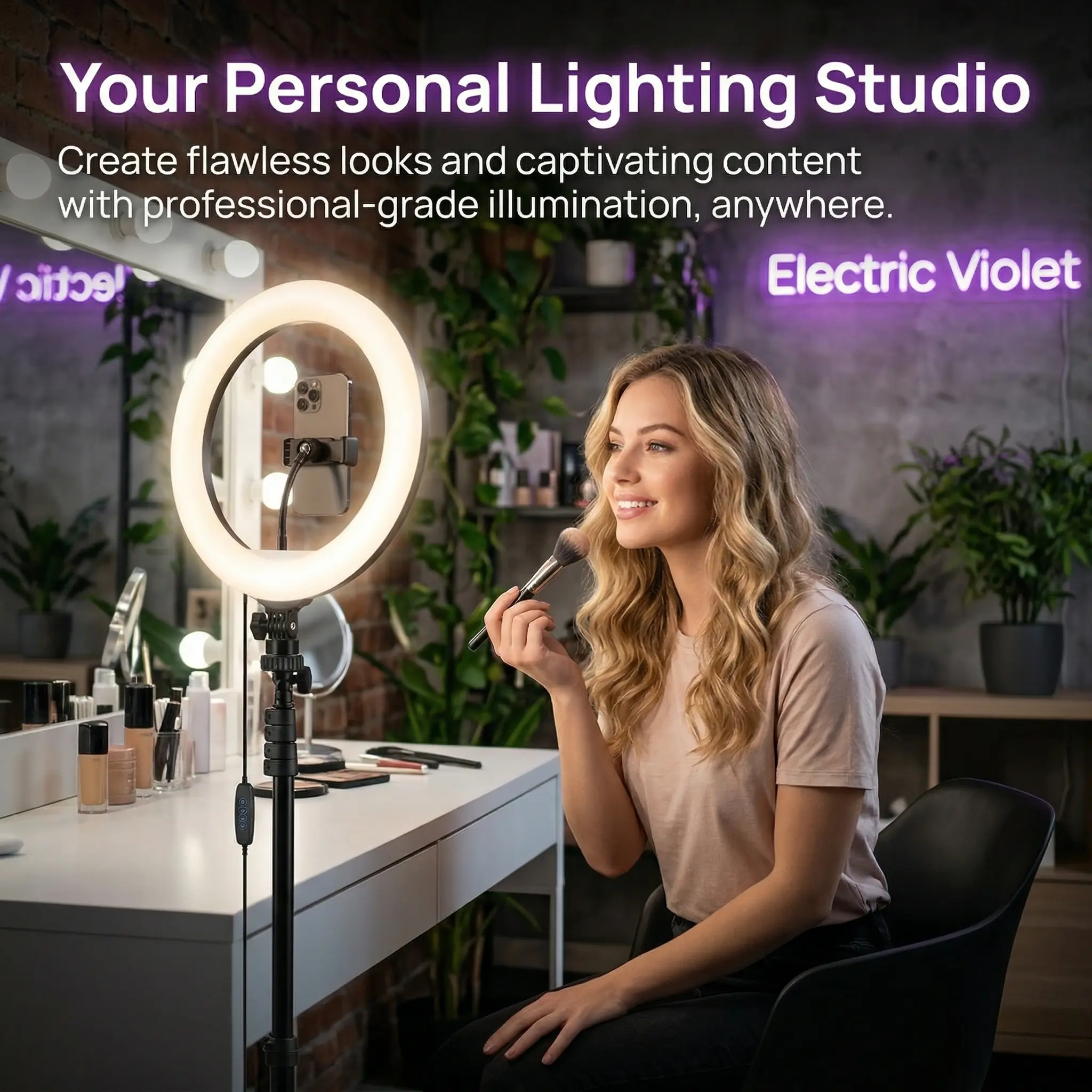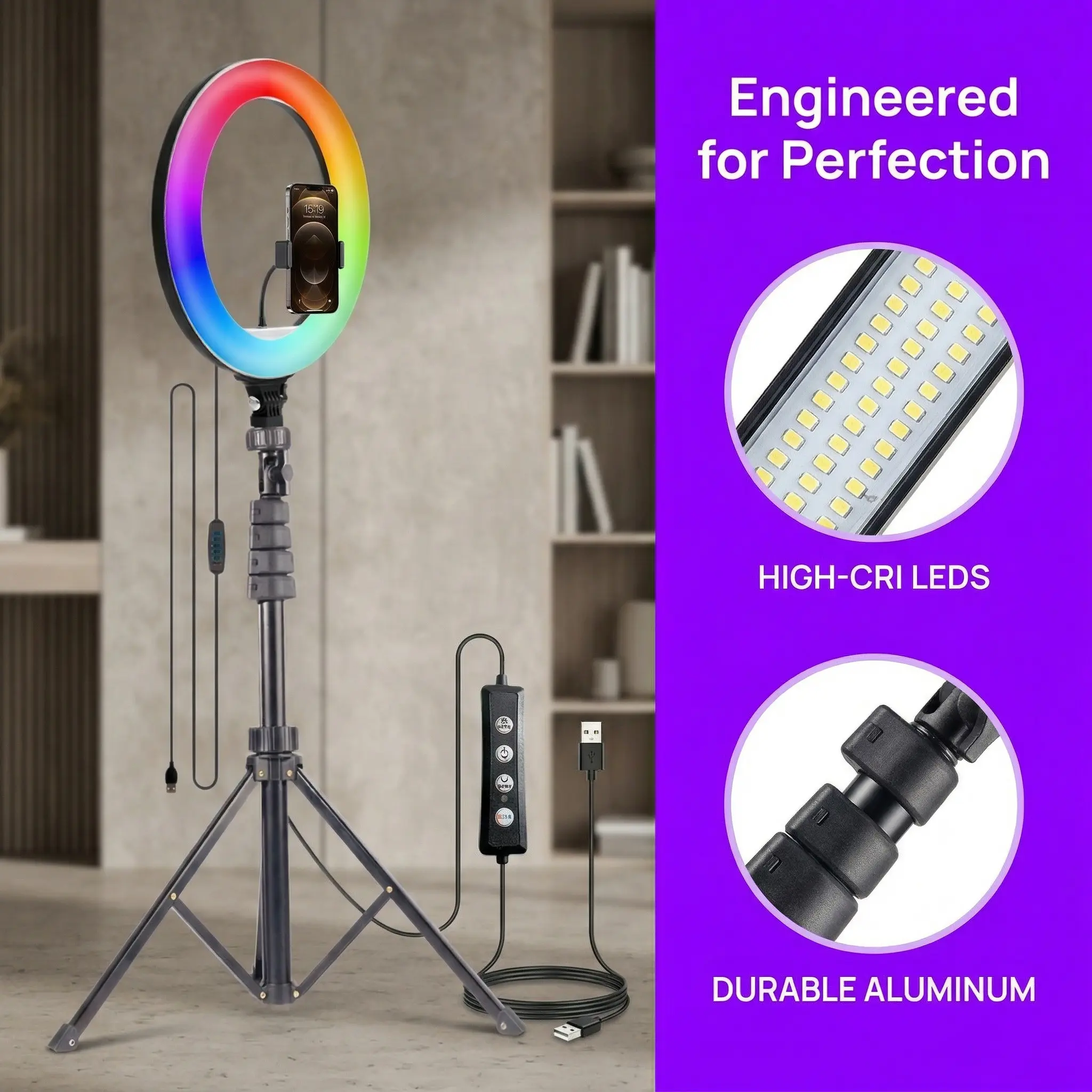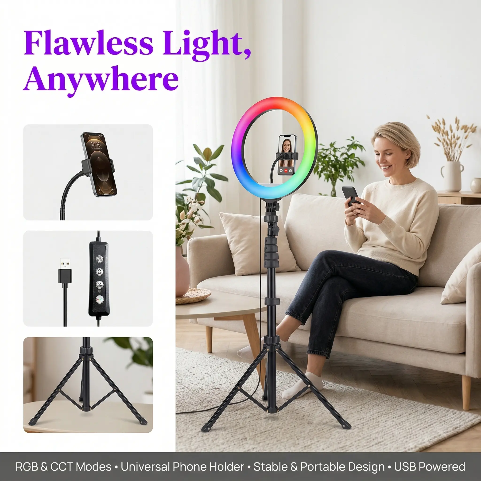 Lightweight 10-Inch RGB Ring Light, USBPlug And Play, with Universal Phone Clip, 63-Inch Adjustable Stand Super Flexible,Makeup, Live Streaming, Photography AreEasy to Use.