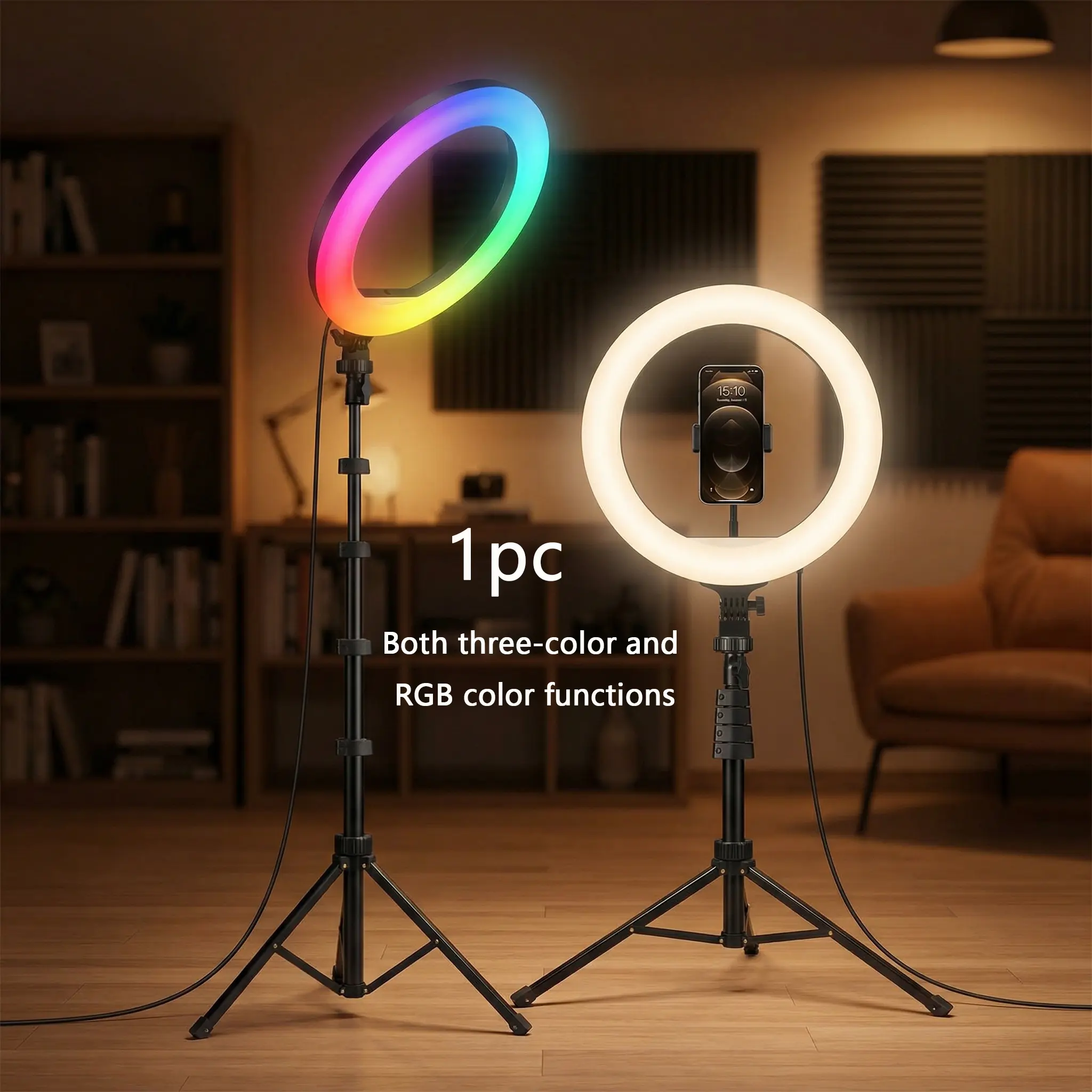 10-Inch Ring Light for Phones, Featuring a 63-Inch Detachable Tripod And Phone Holder, with Adjustable Single White And RGB Settings, Ideal for Live Streaming And Photography, Perfect for Content Creators