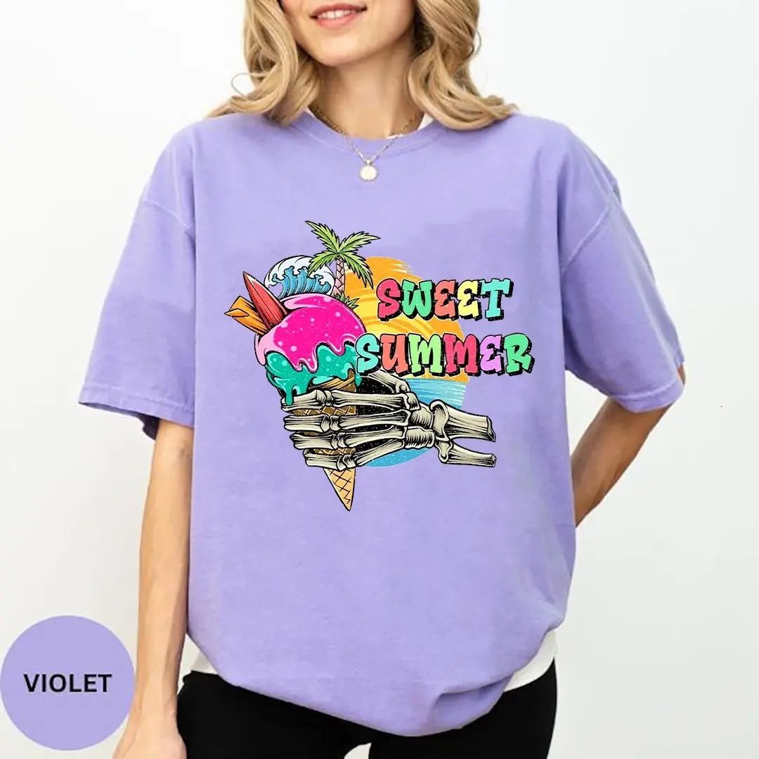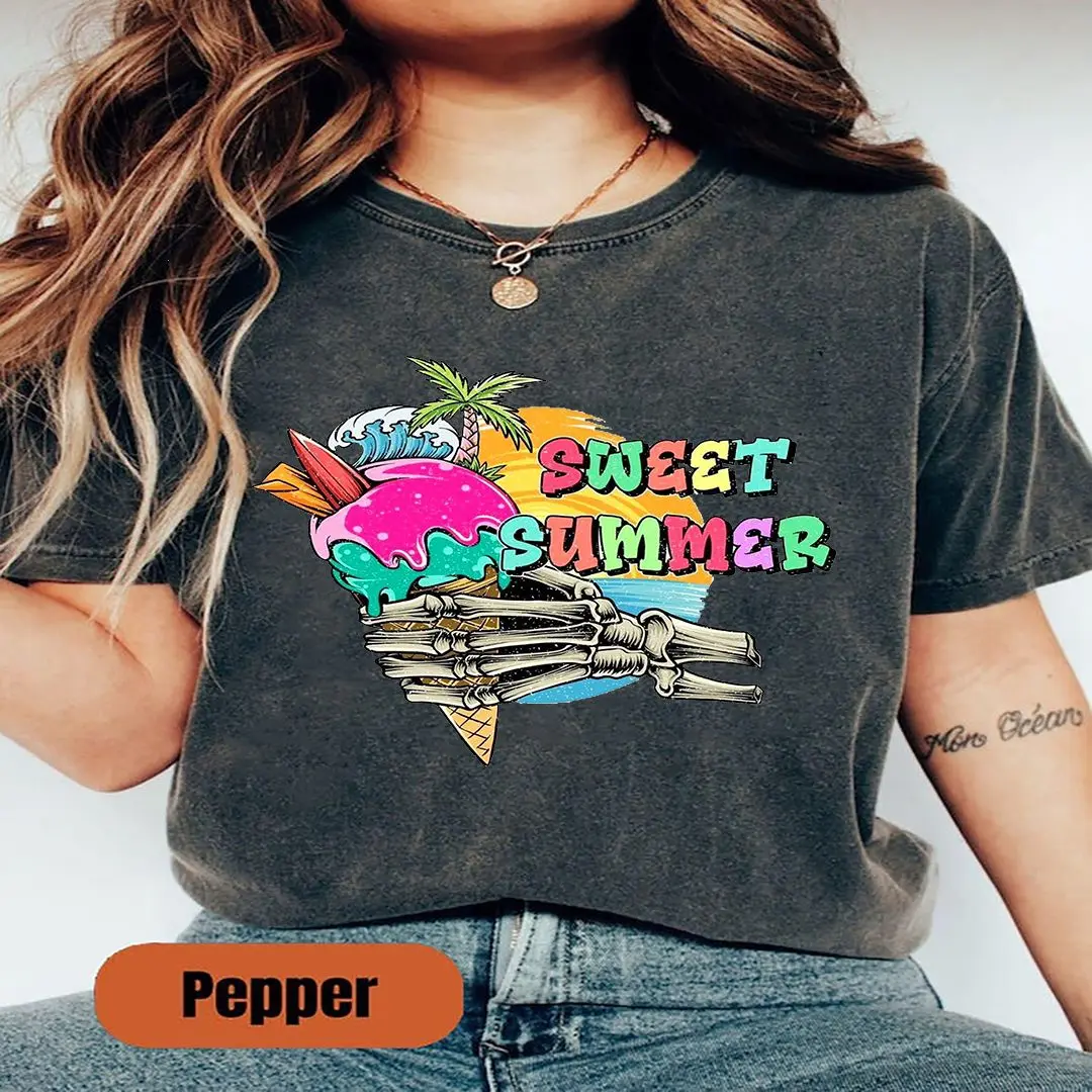 5. Sweet Summer Shirt, Comfort Colors T-Shirt, Funny Skeleton Ice Cream Tee, Beach Vacation Shirt, Retro Summer Graphic.