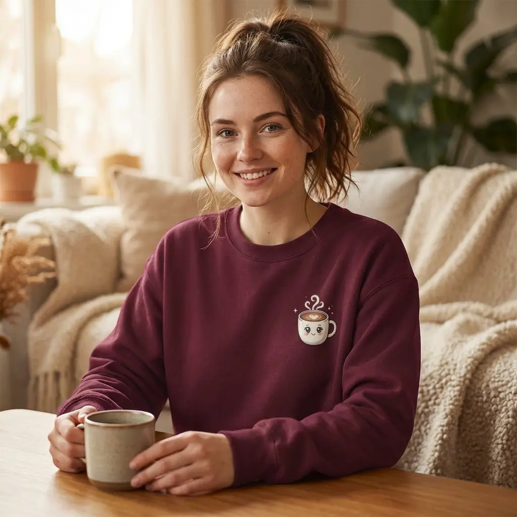 A cozy crewneck that feels like a warm hug on slow mornings. Soft, medium‑heavy fabric holds its shape while the subtle embroidered mug motif adds a quiet, whimsical touch — small enough for everyday wear, visible enough to spark a smile. Built for relaxed, all‑day comfort with reinforced seams and a ribbed collar that keeps its fit wash after wash. Wear it to curl up with a book, run errands between coffee stops, or layer under a coat for chilly commutes. Ethically sourced cotton and OEKO‑TEX dyes mean it’s made with care for people and the planet.