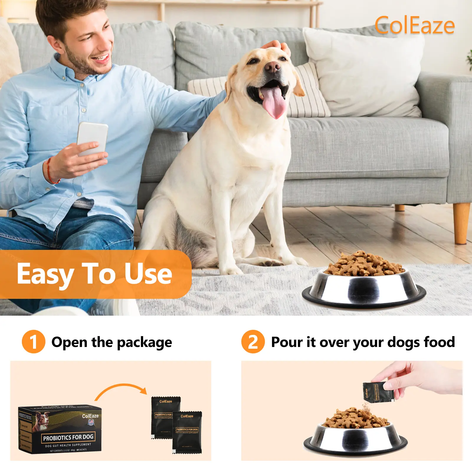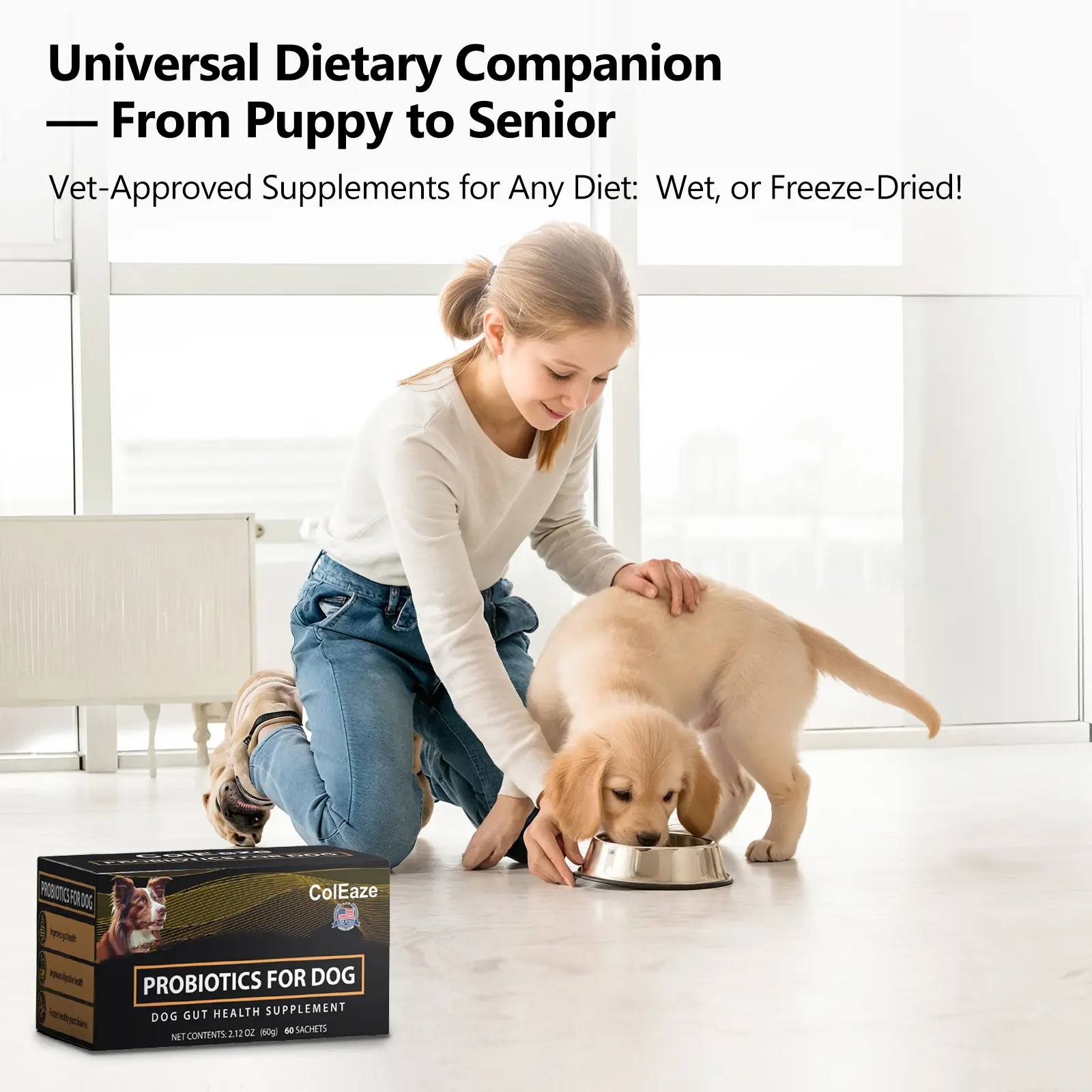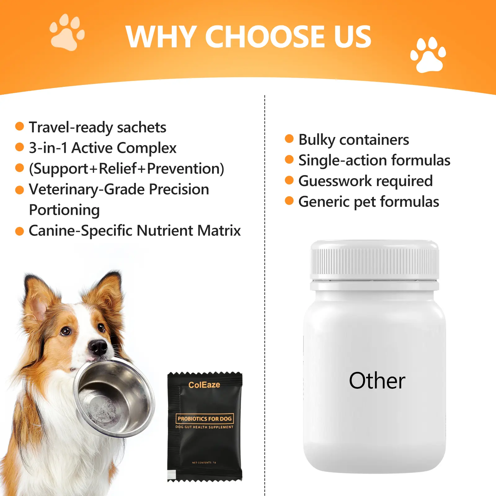 Administration: Simply tear open one sachet and sprinkle the powder onto food. No refrigeration needed. Can be mixed with a small amount of water if desired. Suitable for puppies (12 weeks+), adult dogs, and seniors. Store in a cool, dry place.