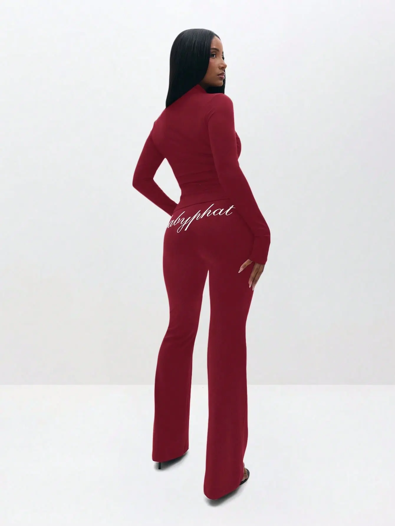 BABYPHAT Ribbed Pull On Flare Leggings High Waisted Stretch Bootcut Pants Fall Winter Casual Everyday