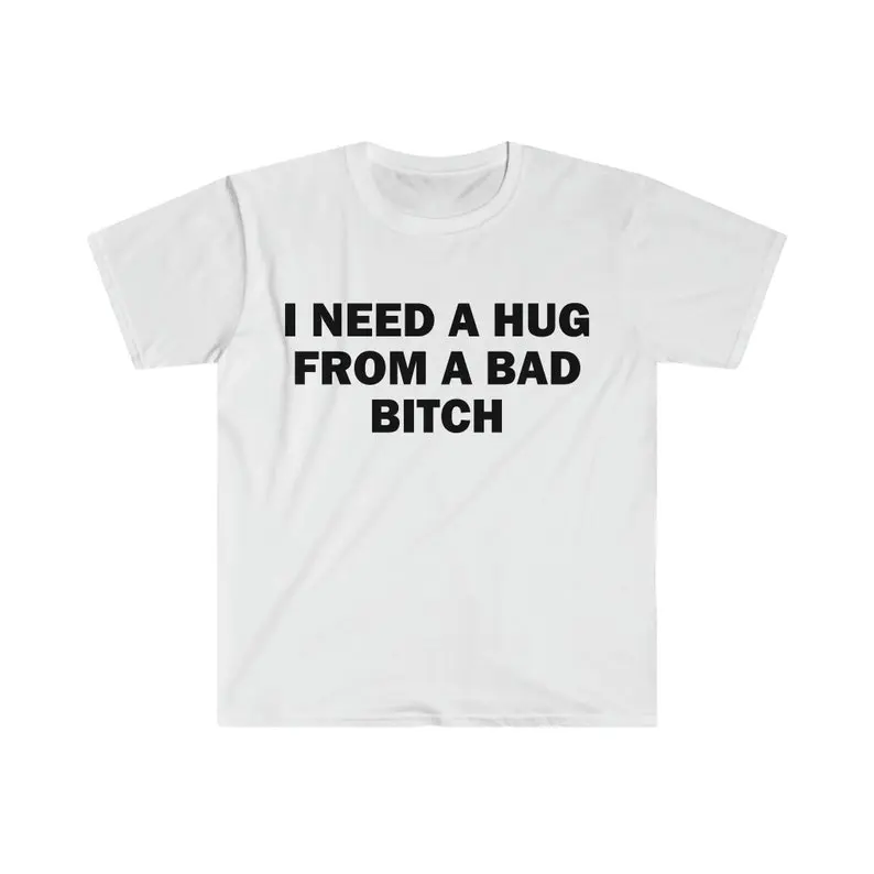 Funny Meme Shirt, I Need A Hug From A Bad B*tch Tee, Unisex Adult Funny T-Shirt, Gift for Women and Men