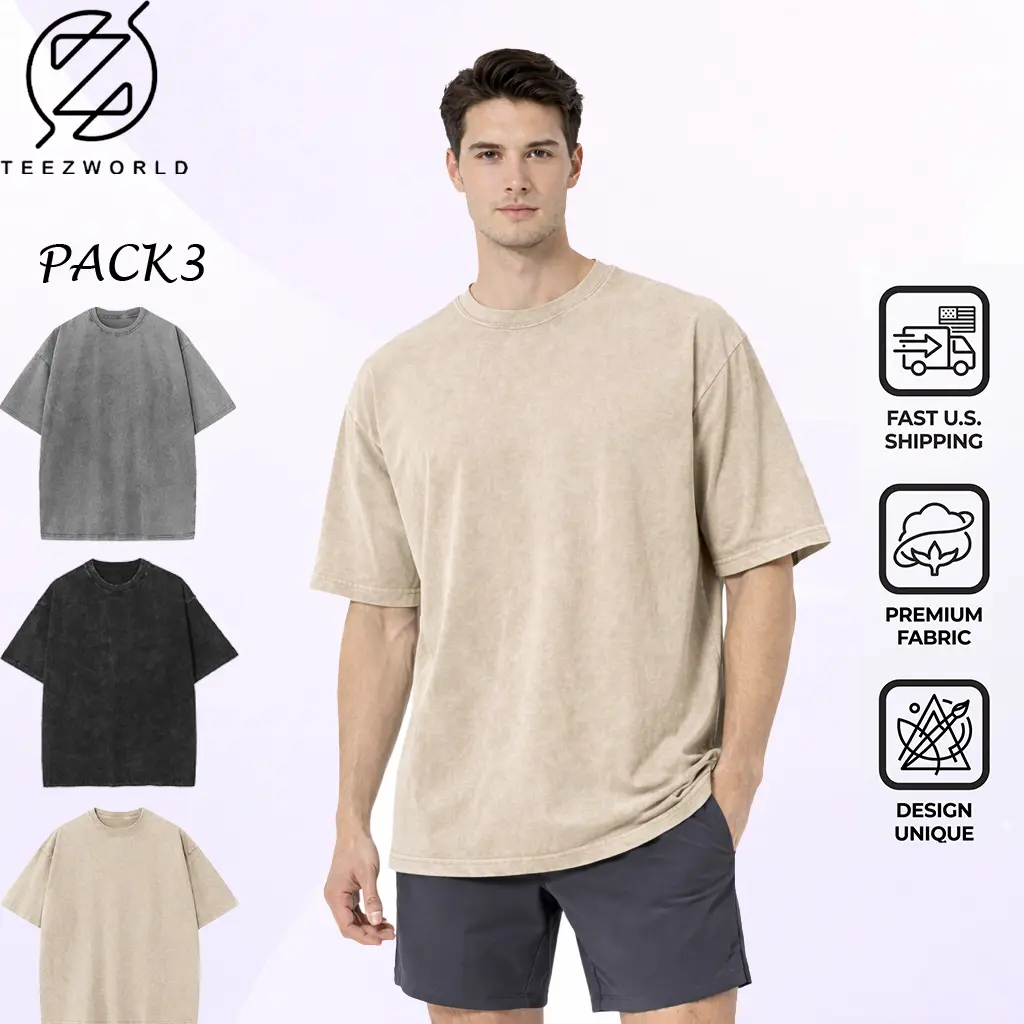 Premium 3-Pack Oversize T-Shirt Bundle – Men’s Oversized Heavyweight Cotton Streetwear Tee Pack, Vintage Washed Loose Fit Casual Shirts, Soft Breathable Fabric, Perfect Everyday Essentials for Summer Outfit