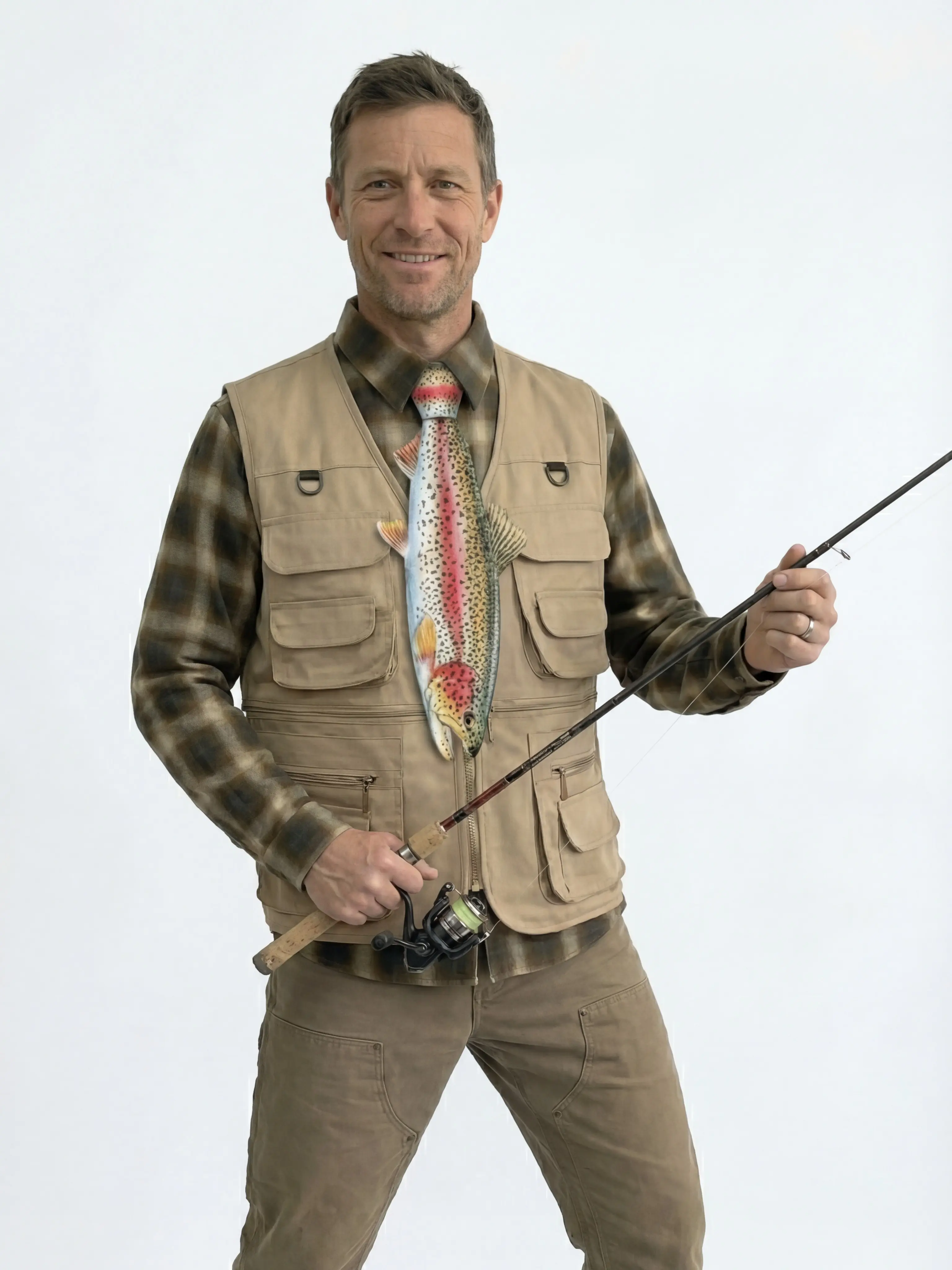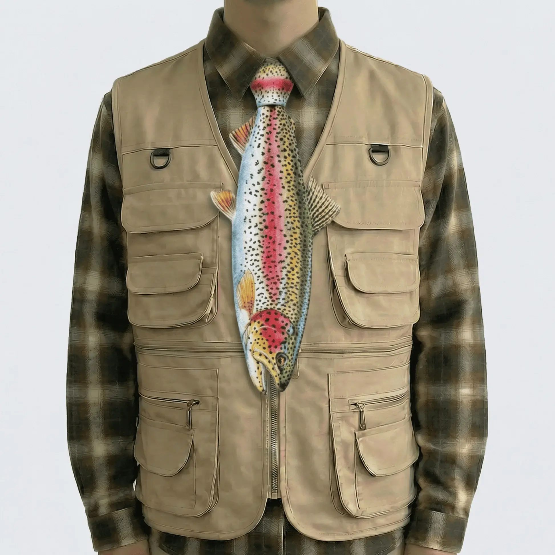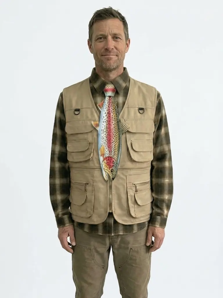 MUS626 3D Printed Rainbow Trout Fishing Tie - Realistic Fish Necktie for Men & Fishermen