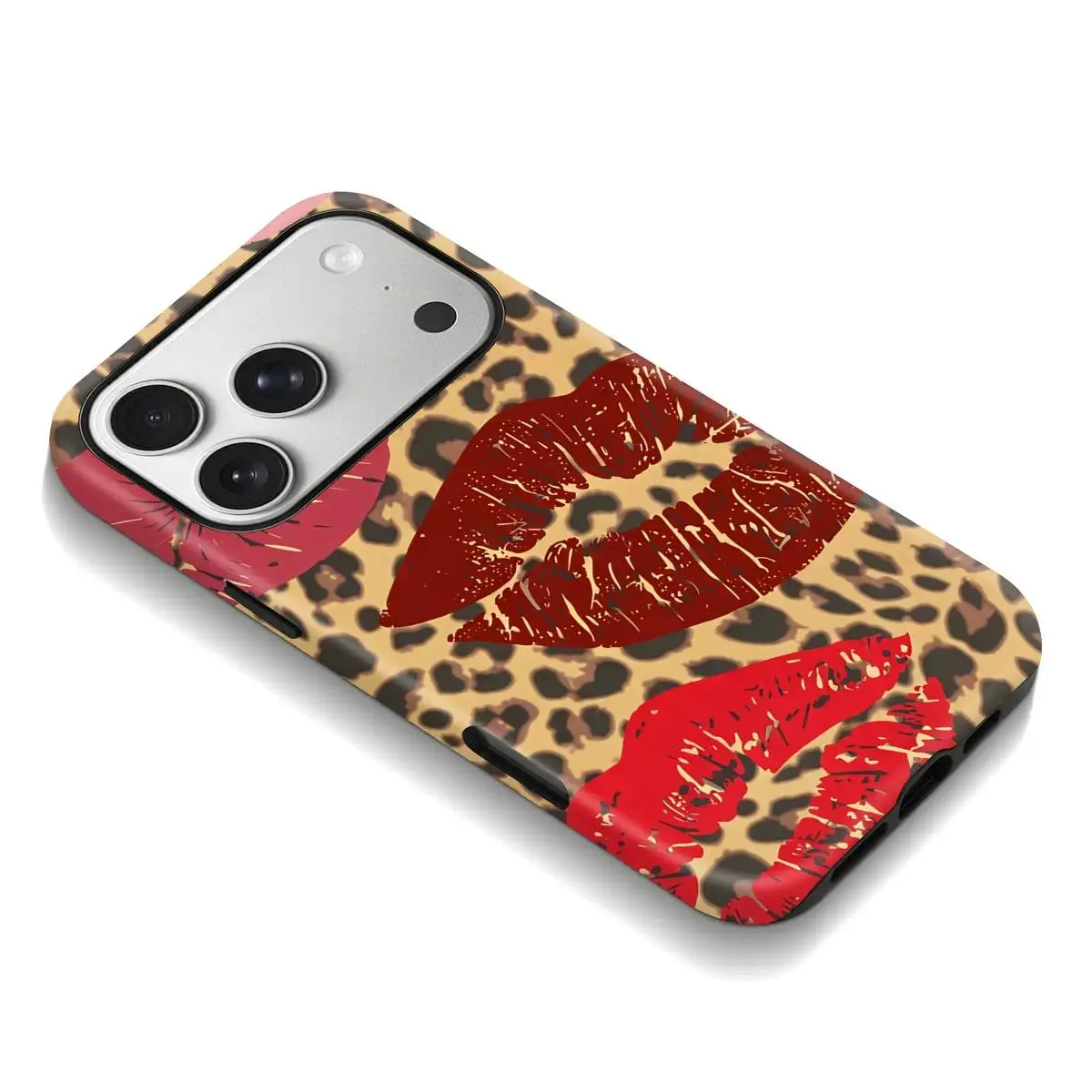 Leopard Print Lip Pattern Design Mobile Phone Case 360 Protection,phone Case Suitable for Iphone 11/12/13/14/15/16/17 Pro Promax Plus Air and Samsung S22/S23/S24/S25 Plus Ultra Fe,Fashion Phone Case