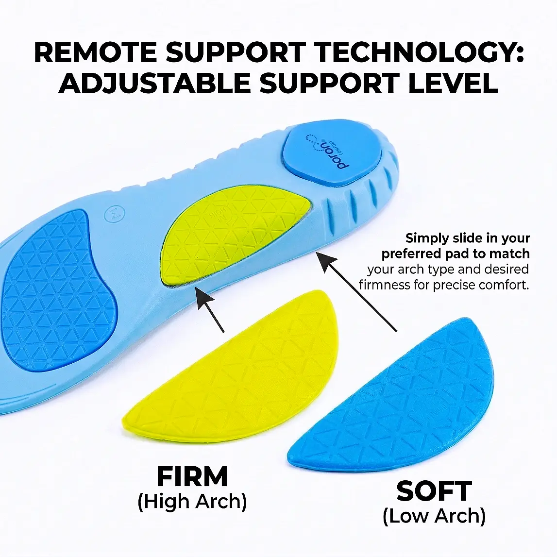 Removable High Arch Support Insoles: Easily switch between 2 adjustable heights for customized arch support, suitable for daily wear or high-intensity activities. The removable design adds versatility, making these ideal plantar fasciitis insoles that adapt to different shoes and usage scenarios