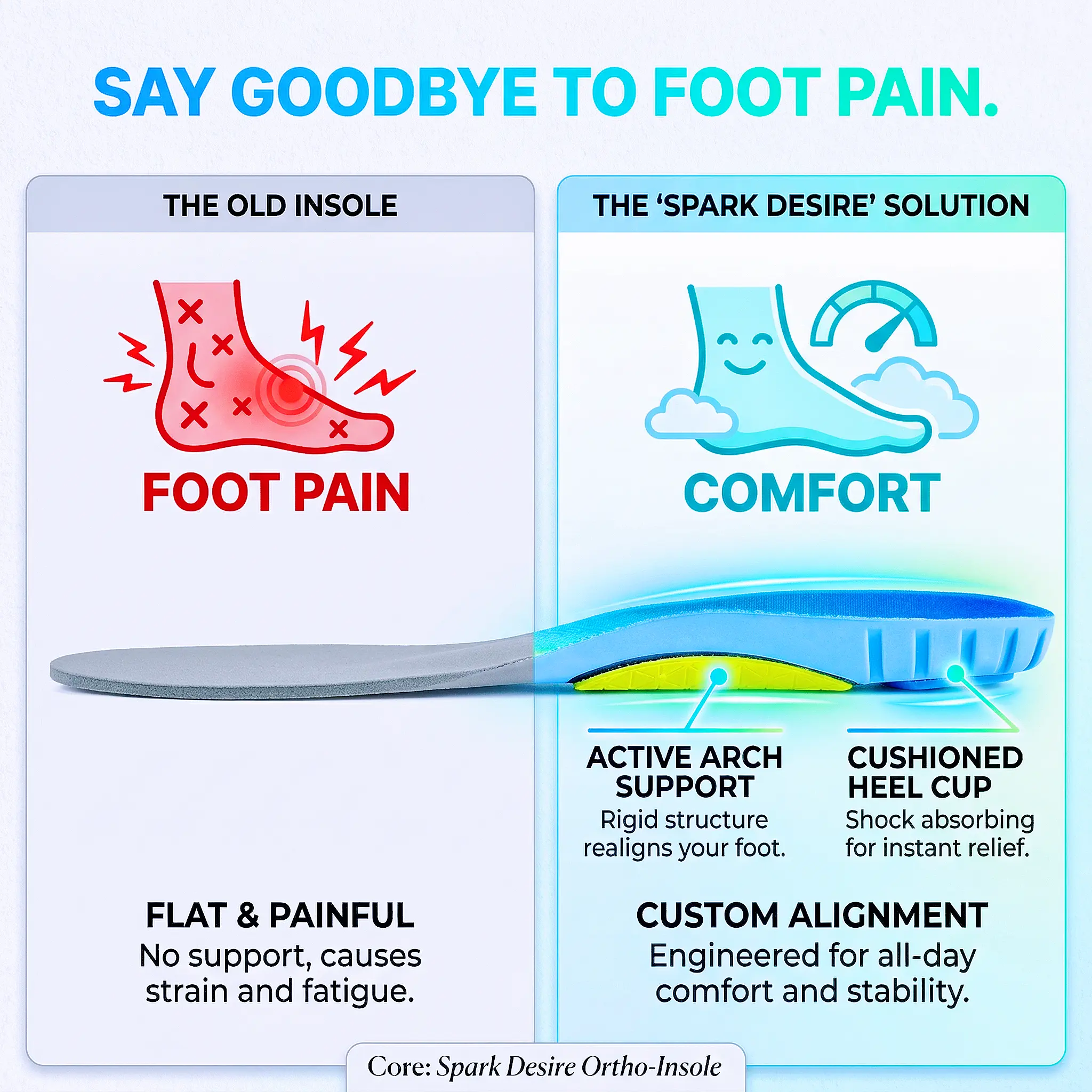 Breathable Sweat-Absorbing Orthotics: Crafted with breathable, sweat-absorbing, and odor-resistant fabric, these inserts promote air circulation to keep feet dry and fresh. Suitable for all-day and daily use, they enhance comfort for Orthotic Shoe Inserts users
