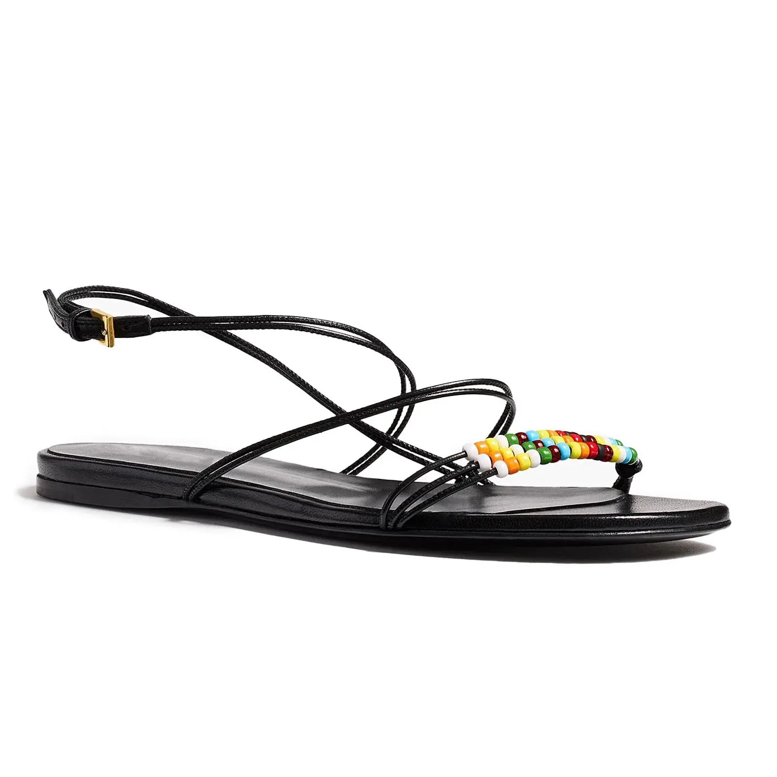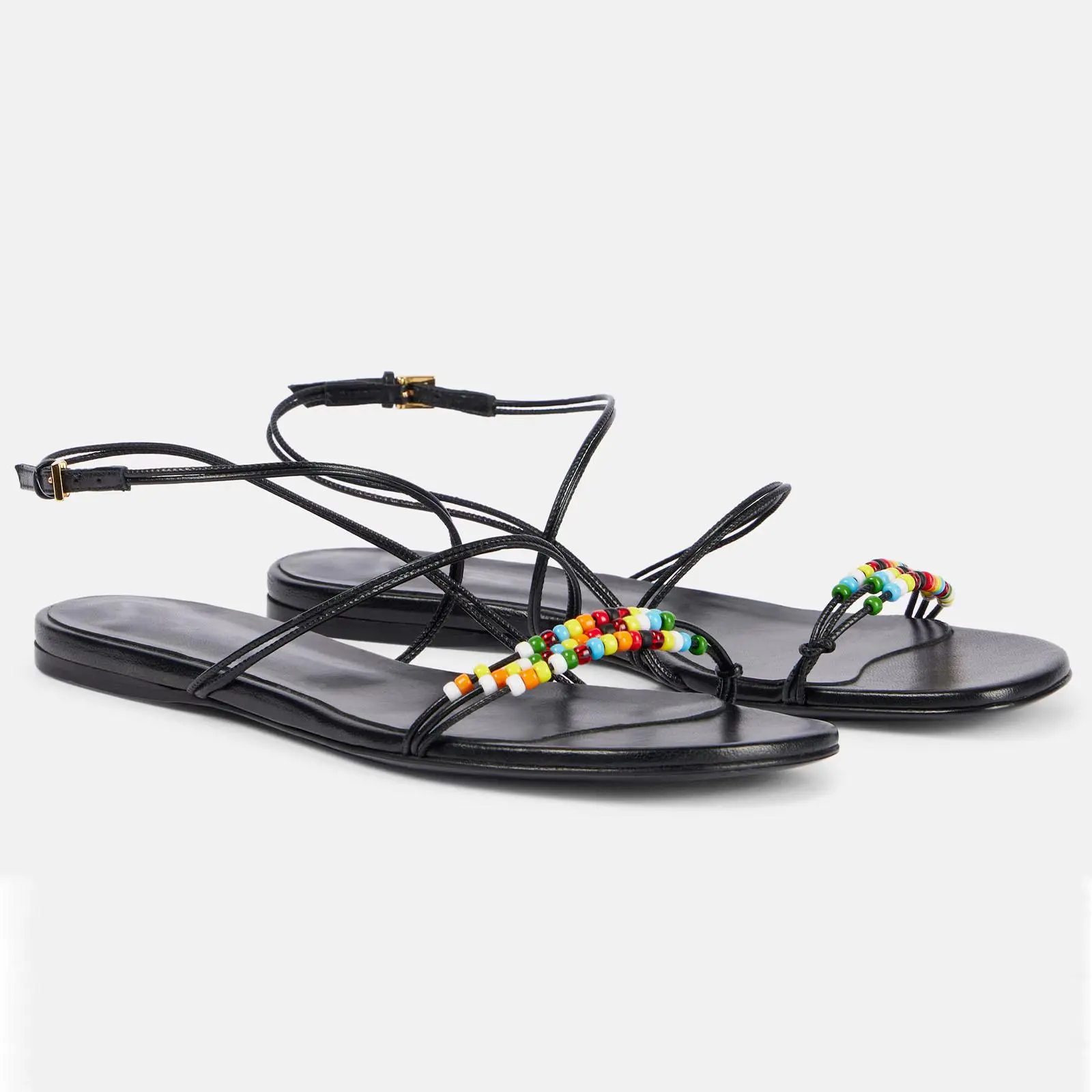 Women’s strappy sandals — open toe, beaded boho style; cute flat sandals with round toe and ankle lace-up straps; dressy flats for summer beach vacations