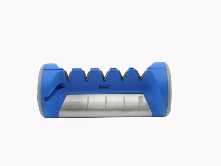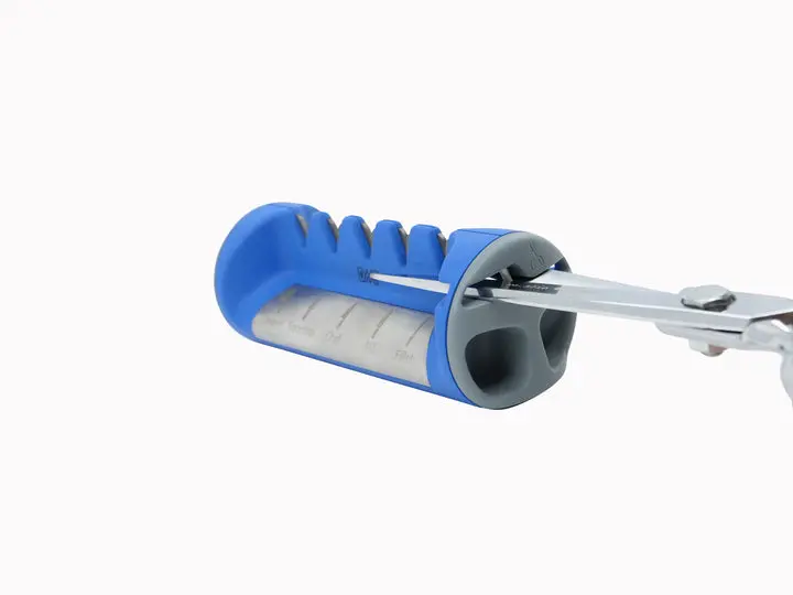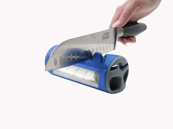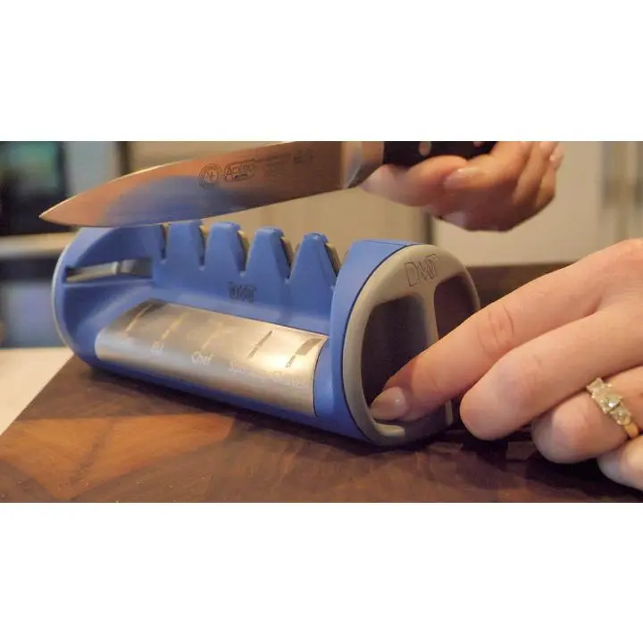 Safe and easy to use, this versatile sharpener does it all. A great addition to your kitchen counter, to keep your knives & kitchen shears sharp and ready. With 5 different V-slot angles from 14 to 26 degrees to sharpen everything from a fillet knife to a kitchen cleaver. Simply match what your knife type to the icon on the front of the sharpener and pull your knife blade through that corresponding sharpening slot. No need to know the angle of your blade. Use the integrated shear sharpener to pull through non-serrated kitchen shears.