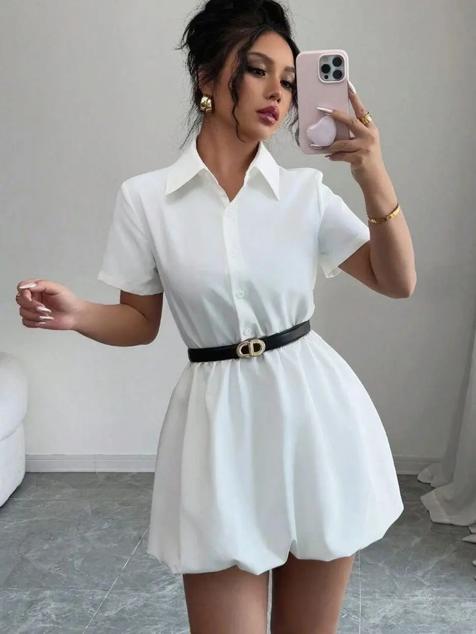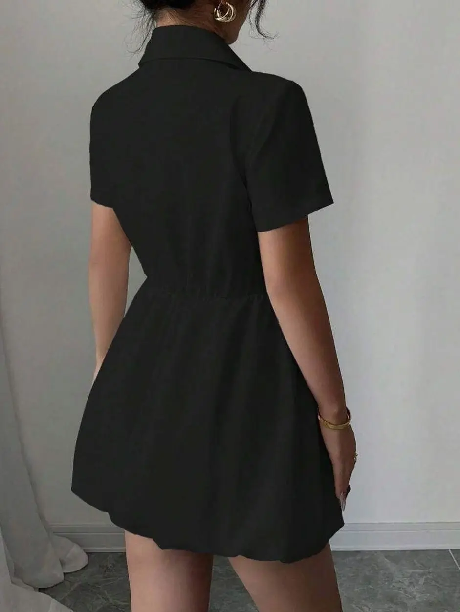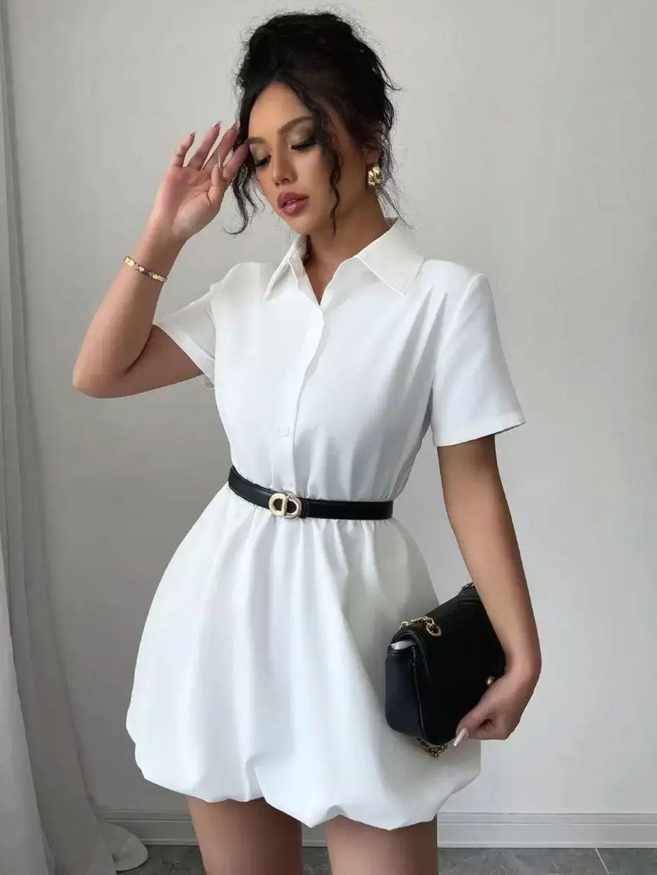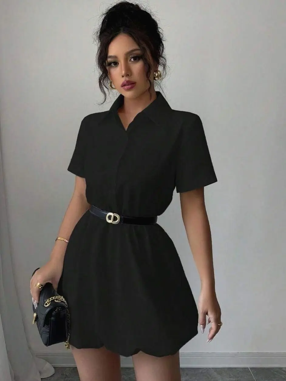 Women's Elegant Solid Color Short Sleeve Shirt Mini Dress Casual Office Outfit