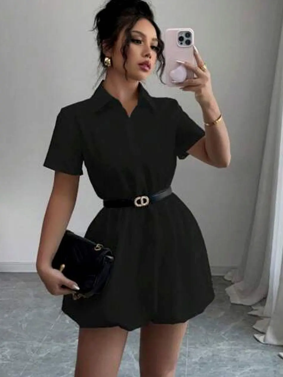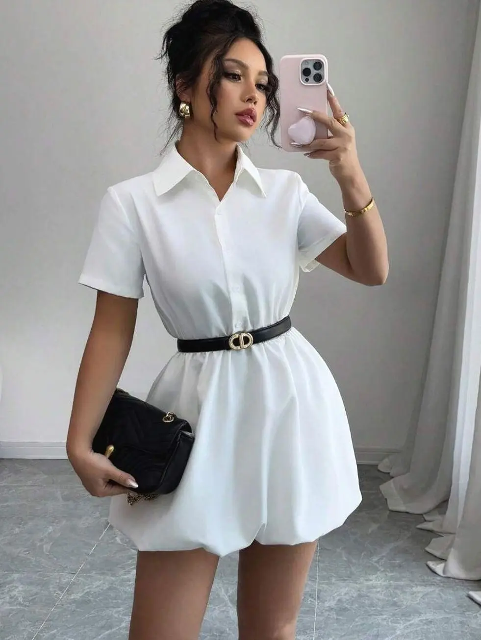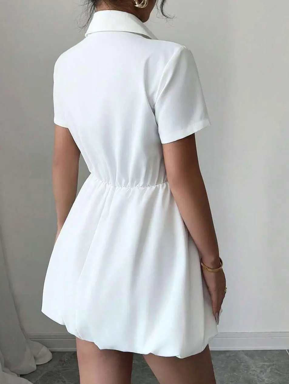 Women's Elegant Solid Color Short Sleeve Shirt Mini Dress Casual Office Outfit
