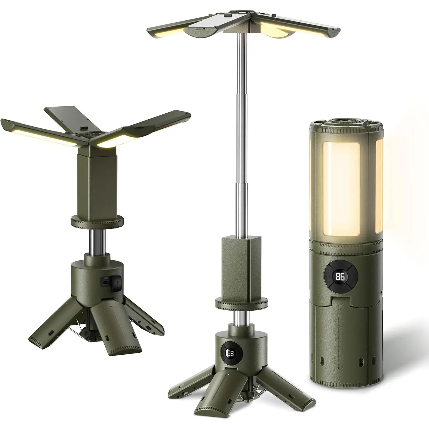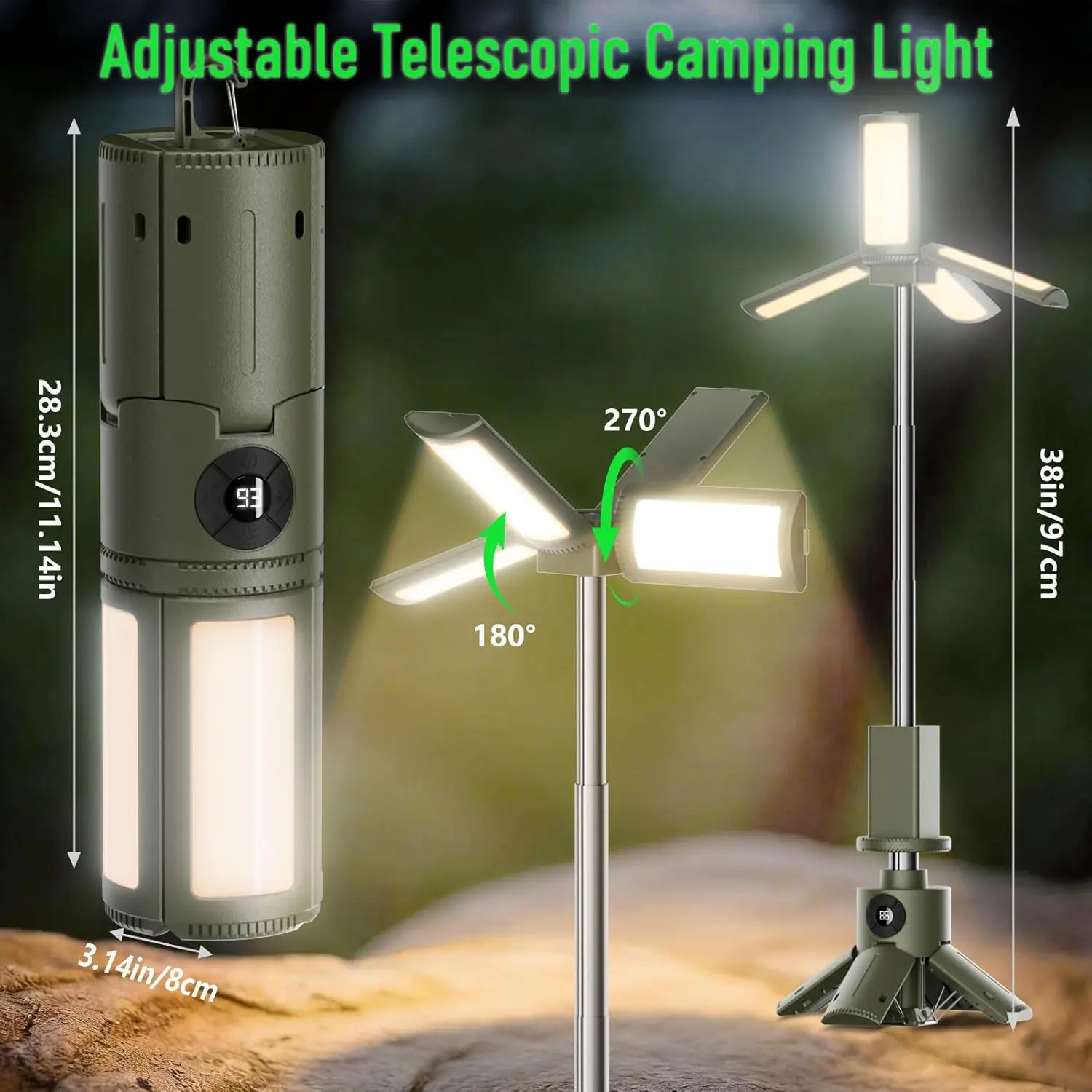 Telescopic Camping Lights with Stand, 14000mAh Rechargeable Camping Lantern with Display, Hook and IPX5 Waterproof, Outdoor Camping Lights for Travel, Fishing, Emergency Use