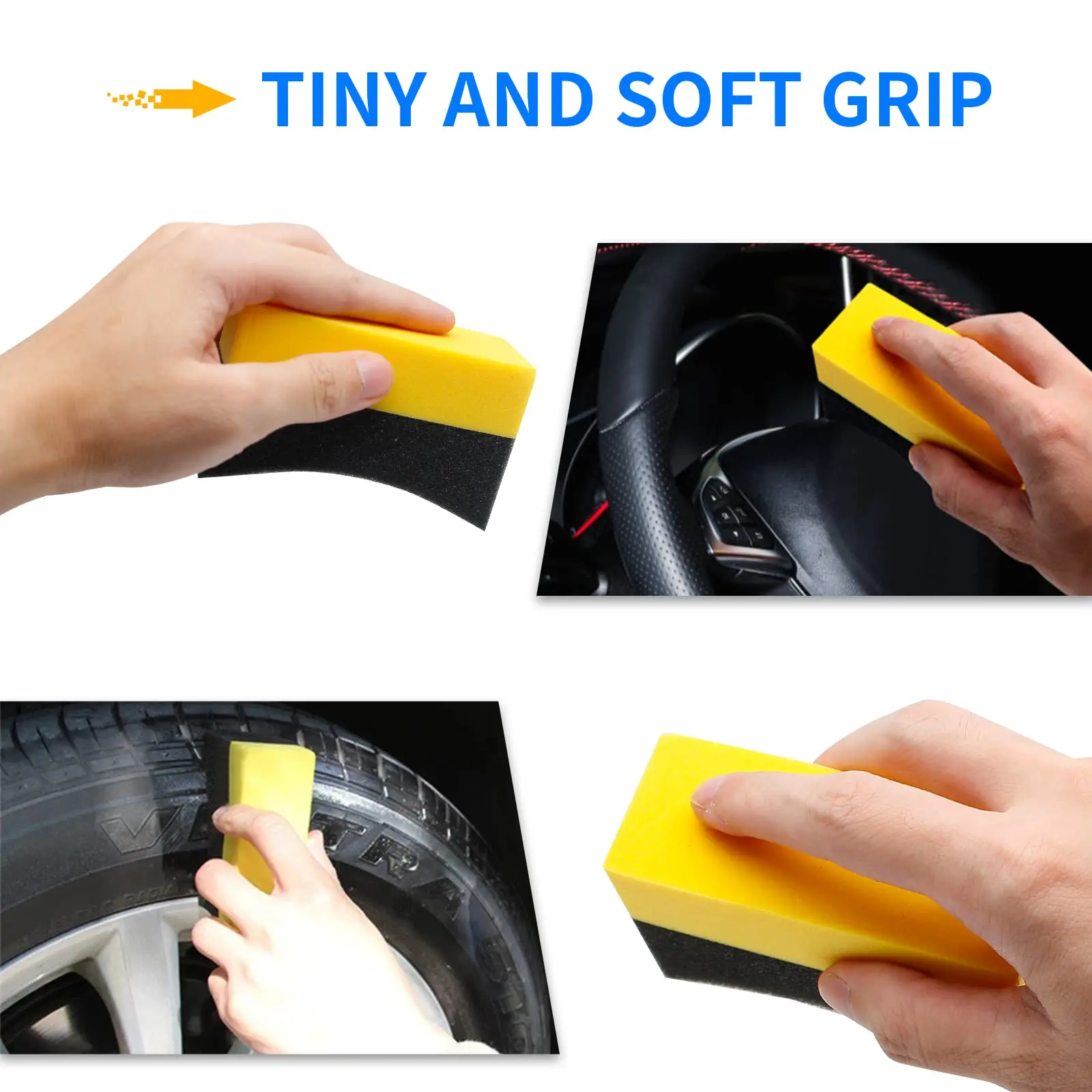 ·【Unique Design】: The Tire Pads Color Polishing Sponge with the right size, a crescent-shaped design on the top for better grasp; The bottom is designed with a rectangular soft and bright foam pad, which will not be easily deformed when squeezed, so you can use it with confidence.