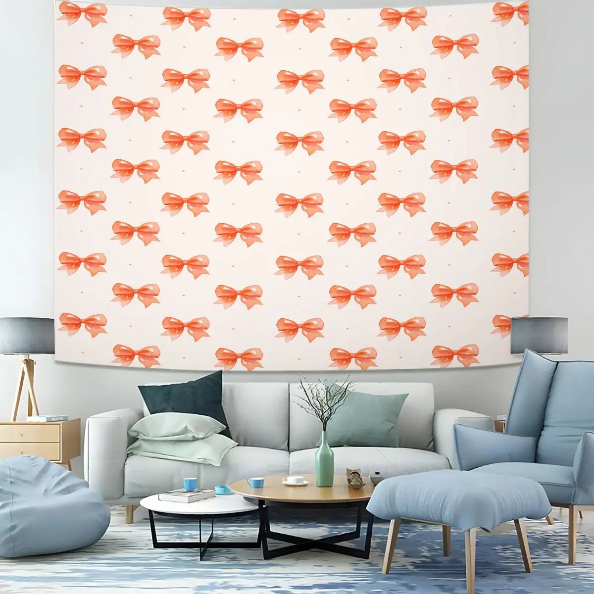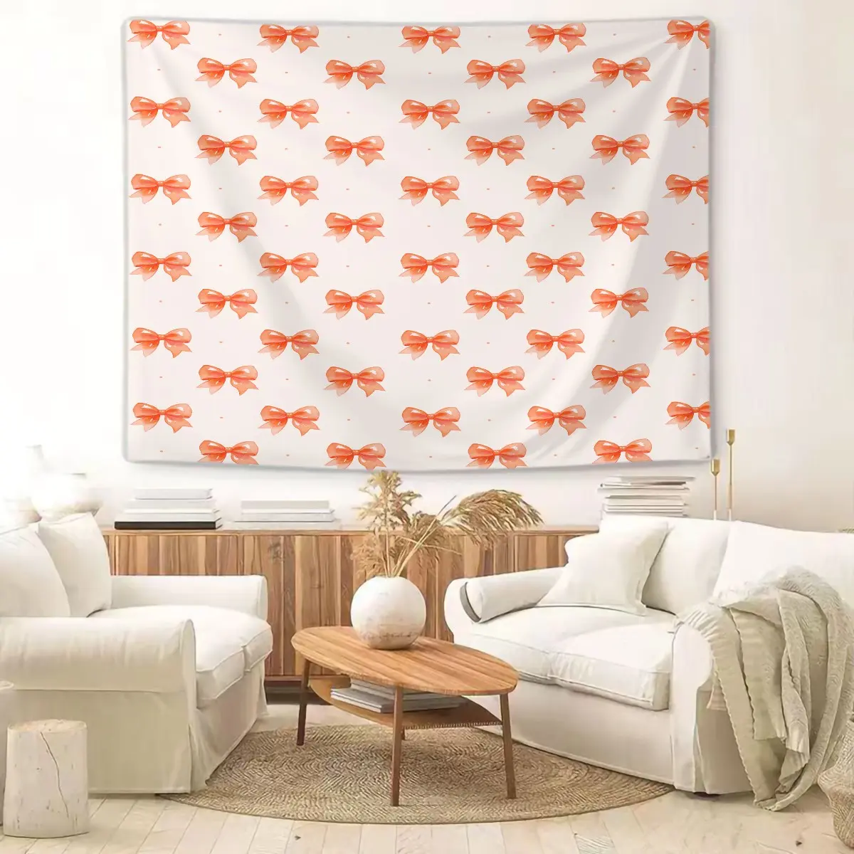Bow Series Cute Romantic Sweet Decorative Tapestry, Gentle Healing Girlish Aesthetic, Photo & Party Backdrop, Housewarming Birthday Valentine's Day Christmas Gift