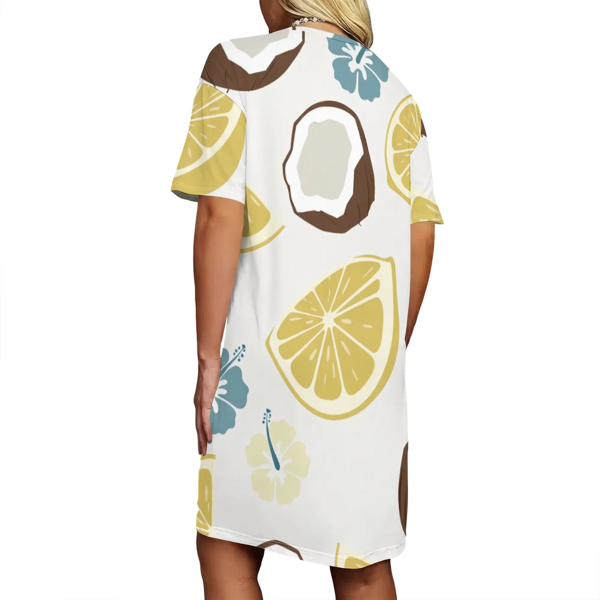 5. Ladies Lemon Coconut Print T-Shirt Dress Short Sleeve Casual Summer Mini Dress with Pocket
