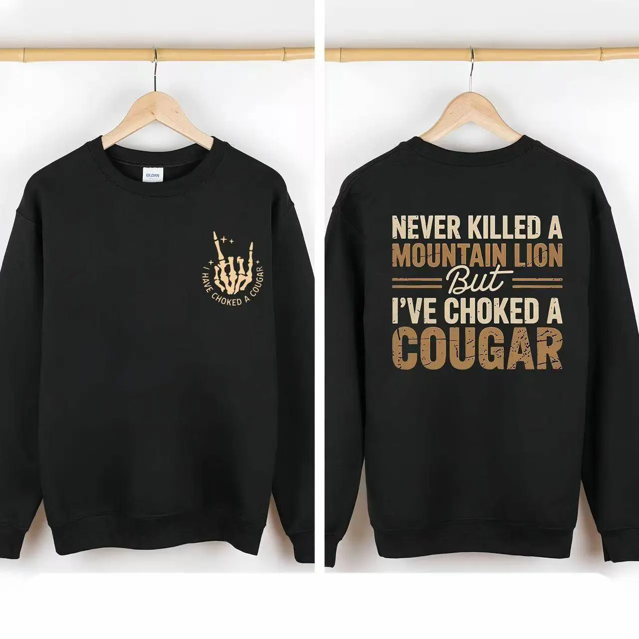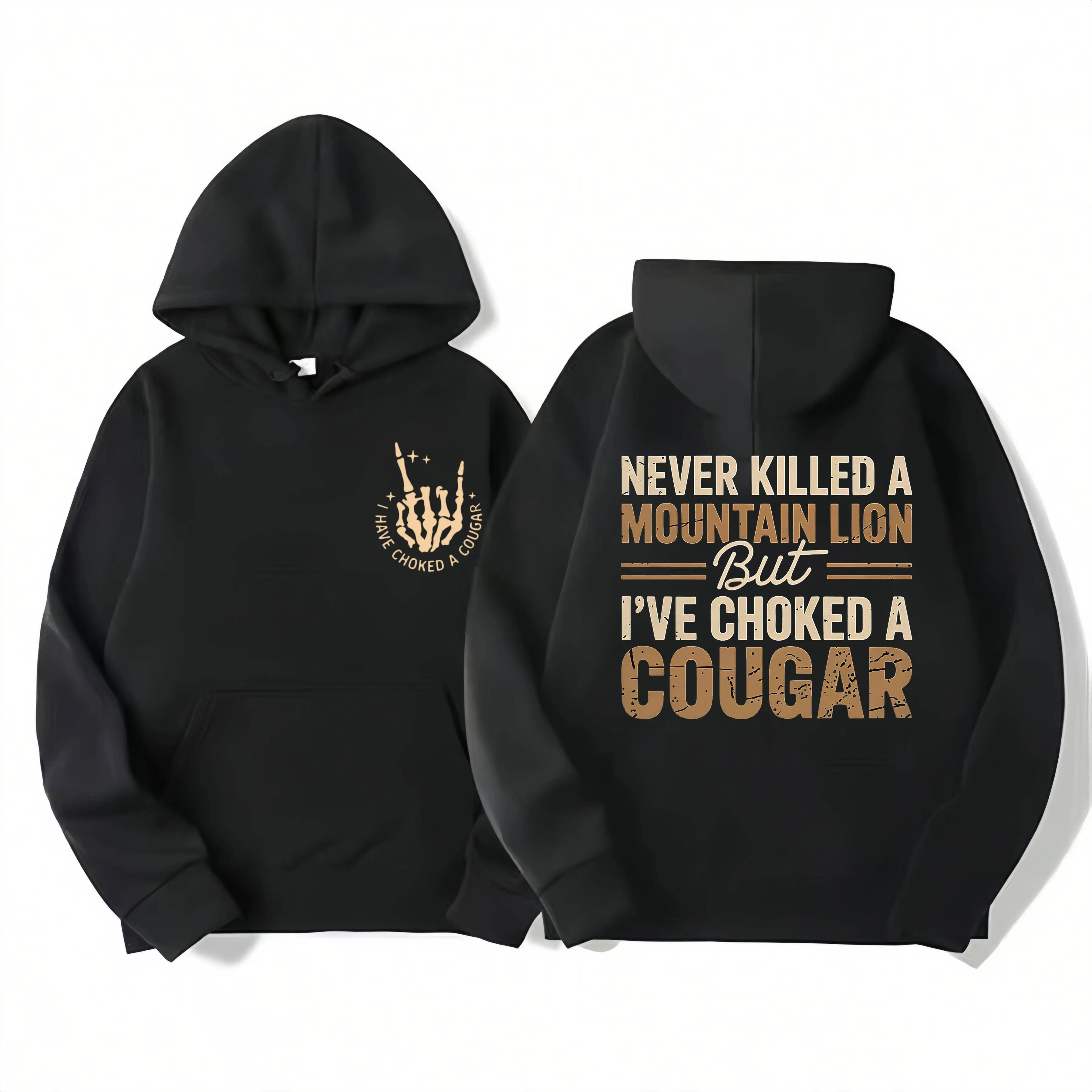 Never Killed a Mountain Lion But I have Choked a Cougar Funny Quote T-Shirt, Sarcastic Humor 2 Sided Graphic Design Unisex Cotton T-shirt for for Women Womenswear Top