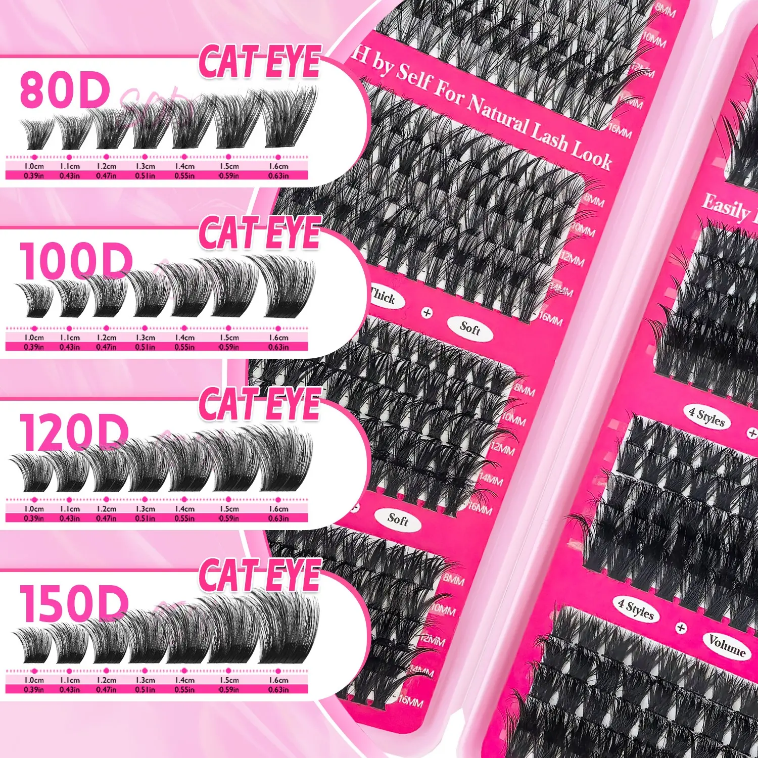 Self Adhesive Individual Lash Extensions D Curl 30D-150D Fluffy Cluster Lashes, Reusable Thick Natural 8-16mm Mixed, Dramatic Look for Party Wedding Daily Music Festival Women Gift