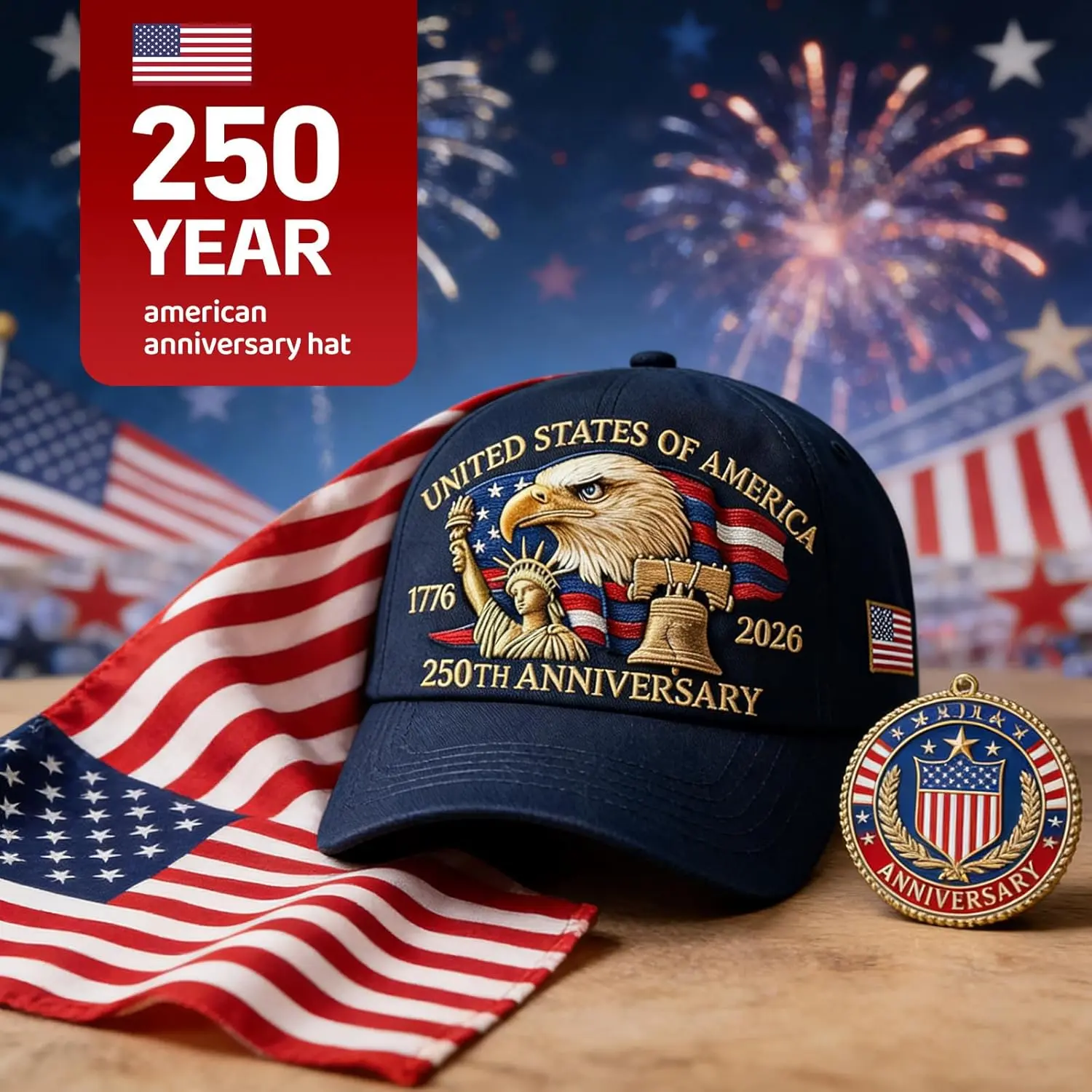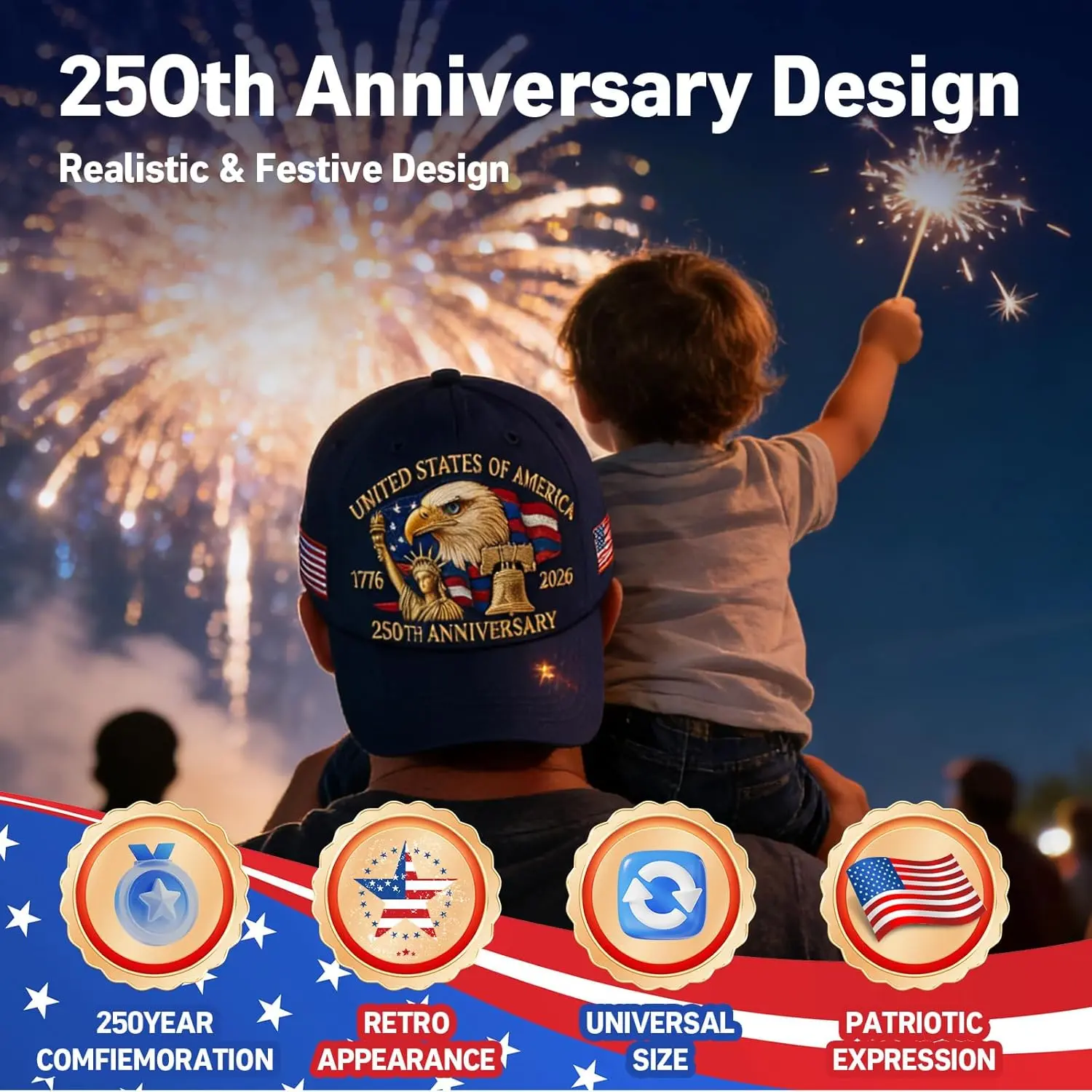 ·【Powerful Symbolism & Historic Tribute】This 250 anniversary usa hat is more than an accessory; it’s a powerful symbol of American heritage. Featuring a commemorative 250th Anniversary design, it stands as a timeless tribute to 250 years of United States history, pride, and progress.