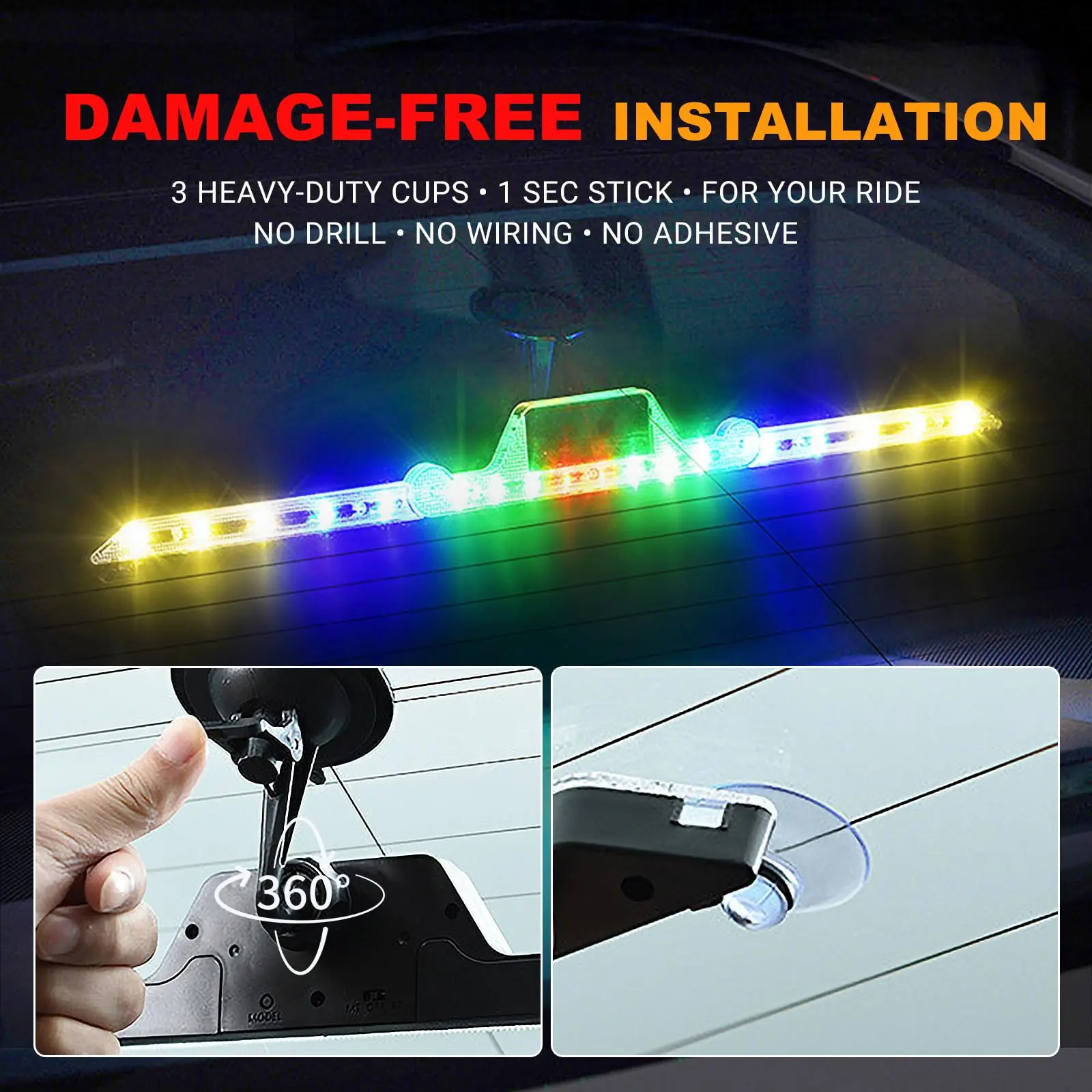 Equip your vehicle with these 2-in-1 RGB lighting bars. Perfect for trucks and cars, they offer manual and remote control options. The bright LED lights ensure safety and visibility during emergencies. Ideal for interior and exterior use, these strobe lights enhance hazard warning capabilities. Stay visible and safe on the road with this versatile lighting solution.