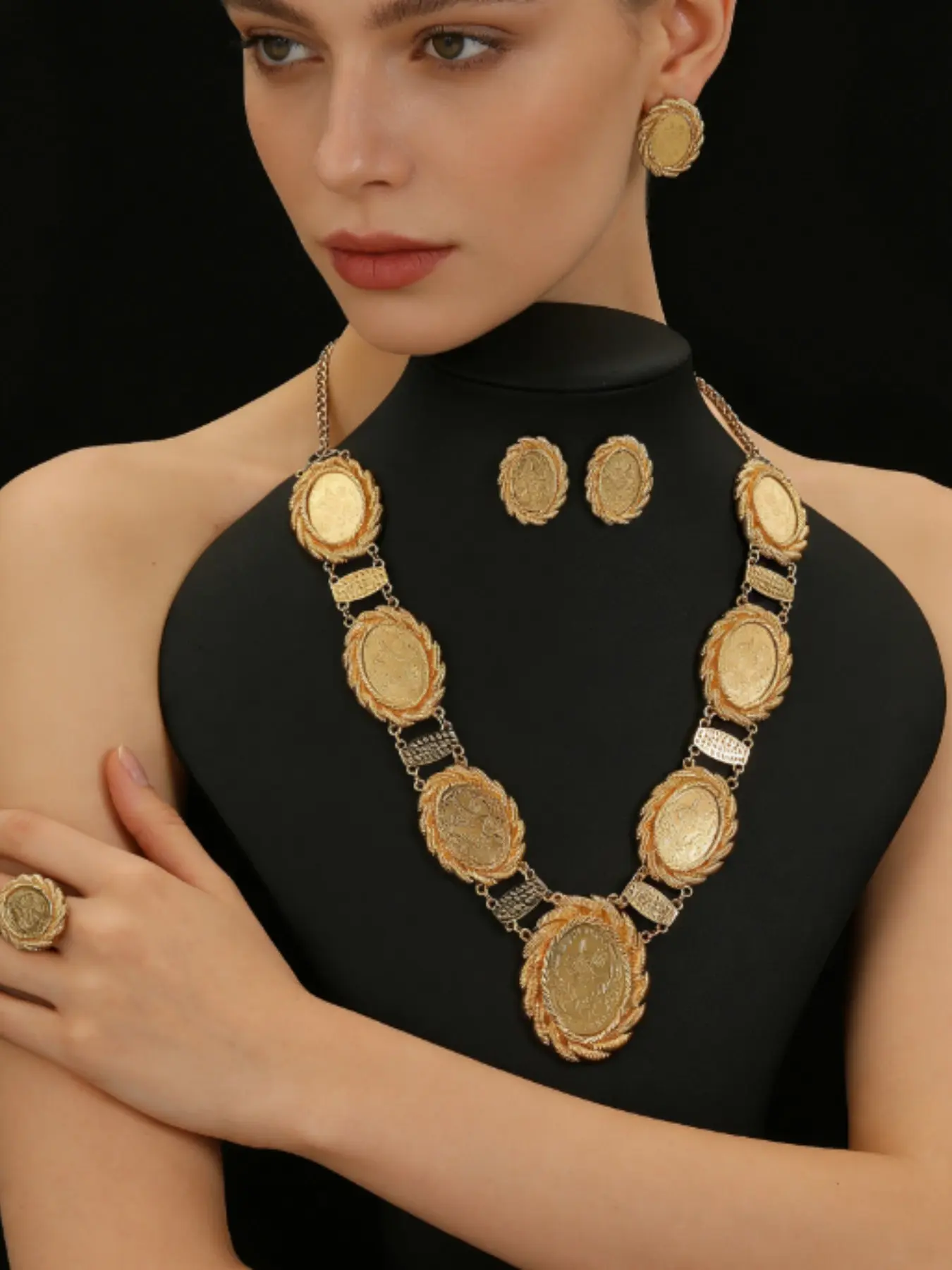 【Three-Piece Set】: Includes a necklace, earrings, and ring, providing a complete and coordinated jewelry set.