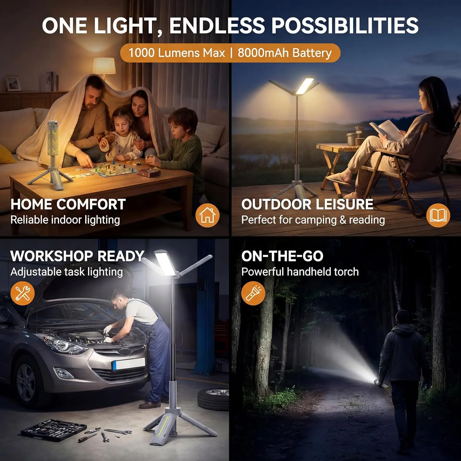 From cozy tent to full campsite.Adjustable outdoor light for adventure.
