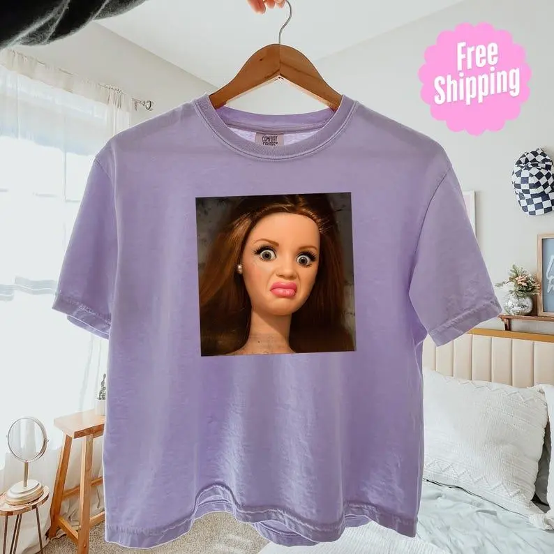 5. Funny Doll Face Crop Tee Sarcastic Humor Graphic Shirt Vintage Pigment Dyed Cotton Top