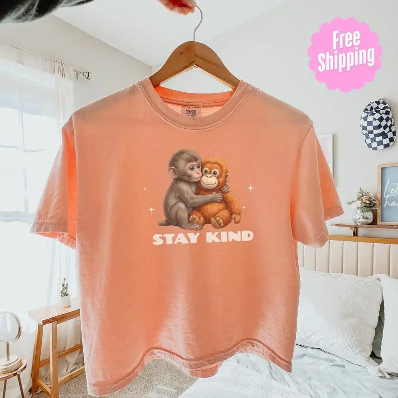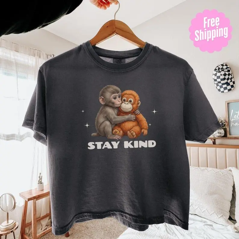 5. Funny Monkey Meme Graphic Crop Tee Vintage Humor Boxy Cotton Shirt